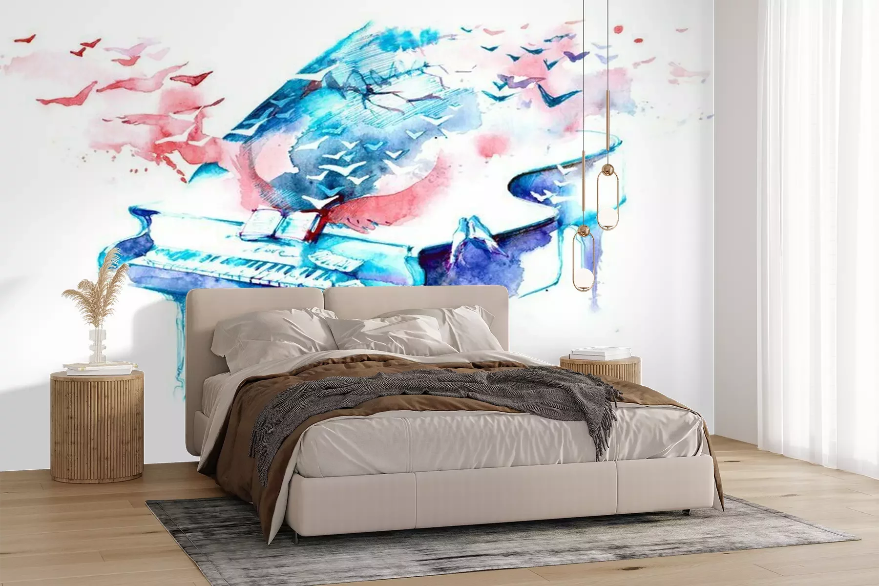 Het materiaal Premium+ is een gestructureerd vinyl op vlies met een gewicht van 255 g/m², dat kleine oneffenheden in de muur effectief camoufleert. De subtiele structuur van fijn zand geeft het oppervlak een exclusieve uitstraling, terwijl de halfmatte afwerking de diepte van de kleuren benadrukt. Het materiaal is dampdoorlatend, waardoor het ook in de keuken en badkamer kan worden gebruikt. De maximale breedte van één baan bedraagt 100 cm – bij grotere afmetingen wordt het fotobehang in meerdere gelijke banen verdeeld. De lijm wordt direct op de muur aangebracht en het behang wordt rand-aan-rand geplakt, wat zorgt voor een esthetisch resultaat zonder zichtbare naden. Het oppervlak kan gemakkelijk worden schoongemaakt door het voorzichtig af te nemen met een vochtige doek.