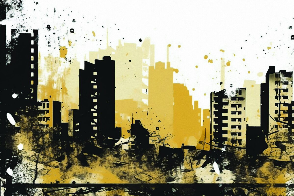 Aquarelweergave van de skyline van de stad met wolkenkrabbers