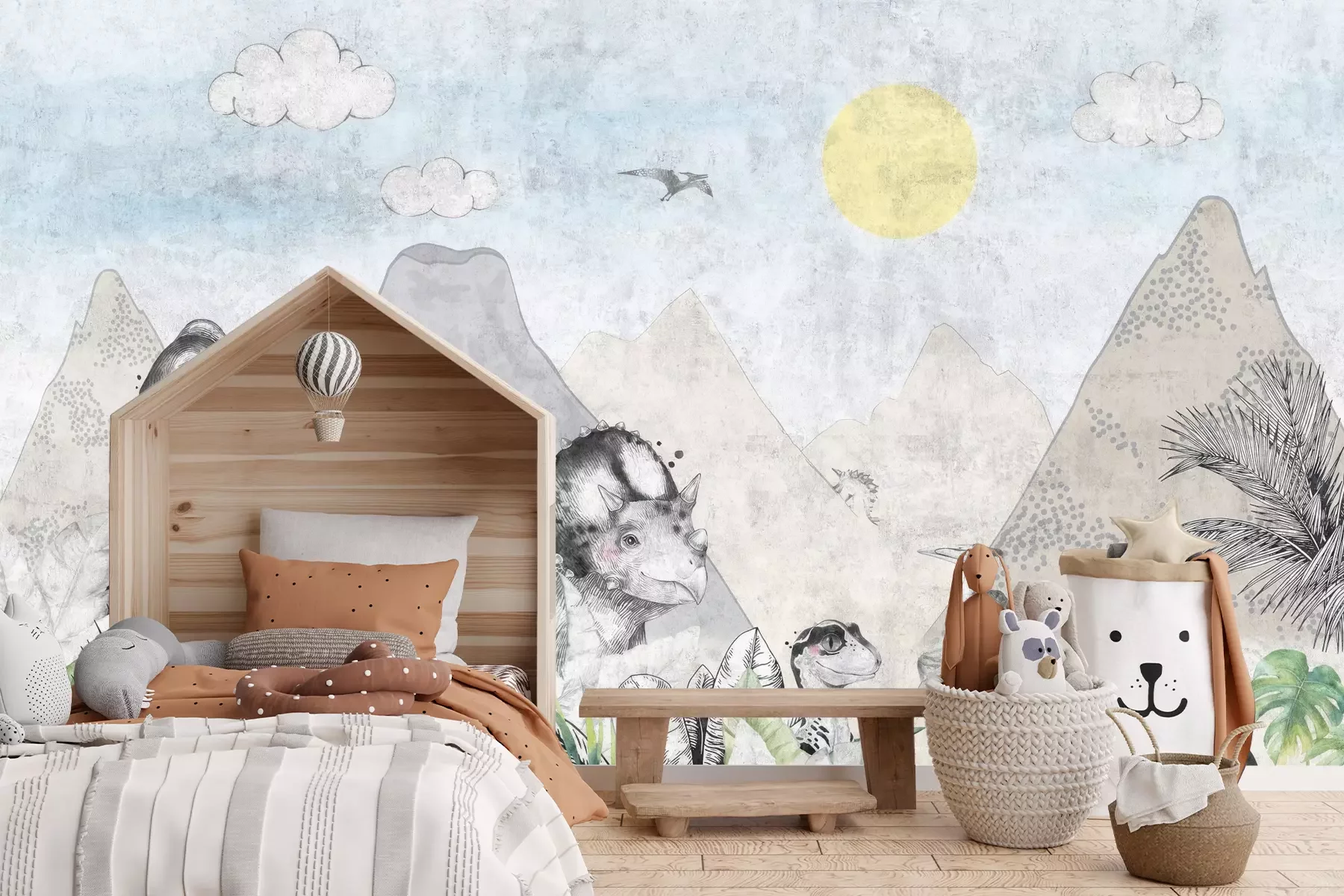 Het materiaal Premium+ is een gestructureerd vinyl op vlies met een gewicht van 255 g/m², dat kleine oneffenheden in de muur effectief camoufleert. De subtiele structuur van fijn zand geeft het oppervlak een exclusieve uitstraling, terwijl de halfmatte afwerking de diepte van de kleuren benadrukt. Het materiaal is dampdoorlatend, waardoor het ook in de keuken en badkamer kan worden gebruikt. De maximale breedte van één baan bedraagt 100 cm – bij grotere afmetingen wordt het fotobehang in meerdere gelijke banen verdeeld. De lijm wordt direct op de muur aangebracht en het behang wordt rand-aan-rand geplakt, wat zorgt voor een esthetisch resultaat zonder zichtbare naden. Het oppervlak kan gemakkelijk worden schoongemaakt door het voorzichtig af te nemen met een vochtige doek.