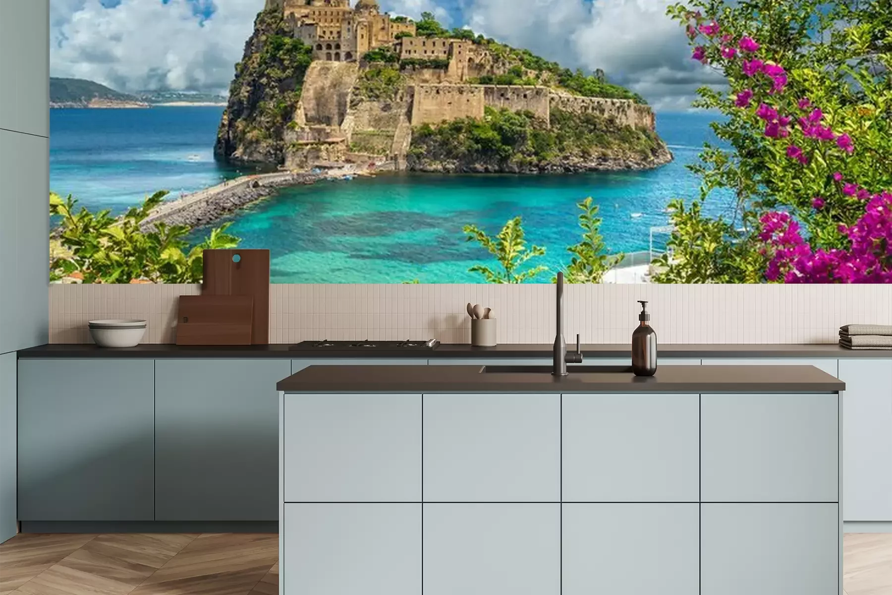 Het materiaal Premium is een glad vinyl op vlies, dat bestand is tegen uitrekken en vervorming. Het is dampdoorlatend – de muren kunnen vrij ademen – waardoor het geschikt is voor gebruik in de keuken en badkamer. Bij vervuiling kan het materiaal worden afgenomen met een vochtige doek. De maximale breedte van één baan bedraagt 95 of 105 cm, afhankelijk van de beschikbaarheid. Montage vindt plaats met de rand-aan-rand methode, wat een esthetisch resultaat zonder zichtbare naden oplevert. Omdat de lijm rechtstreeks op de muur wordt aangebracht, verloopt de installatie van het fotobehang snel en eenvoudig.