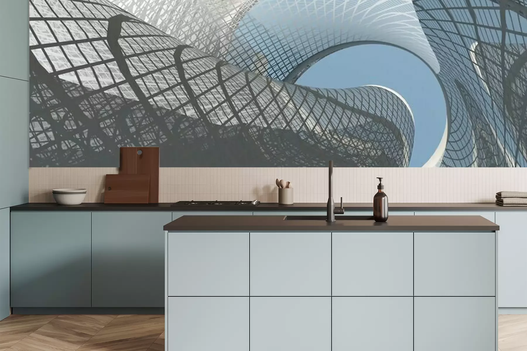 Het materiaal Premium is een glad vinyl op vlies, dat bestand is tegen uitrekken en vervorming. Het is dampdoorlatend – de muren kunnen vrij ademen – waardoor het geschikt is voor gebruik in de keuken en badkamer. Bij vervuiling kan het materiaal worden afgenomen met een vochtige doek. De maximale breedte van één baan bedraagt 95 of 105 cm, afhankelijk van de beschikbaarheid. Montage vindt plaats met de rand-aan-rand methode, wat een esthetisch resultaat zonder zichtbare naden oplevert. Omdat de lijm rechtstreeks op de muur wordt aangebracht, verloopt de installatie van het fotobehang snel en eenvoudig.