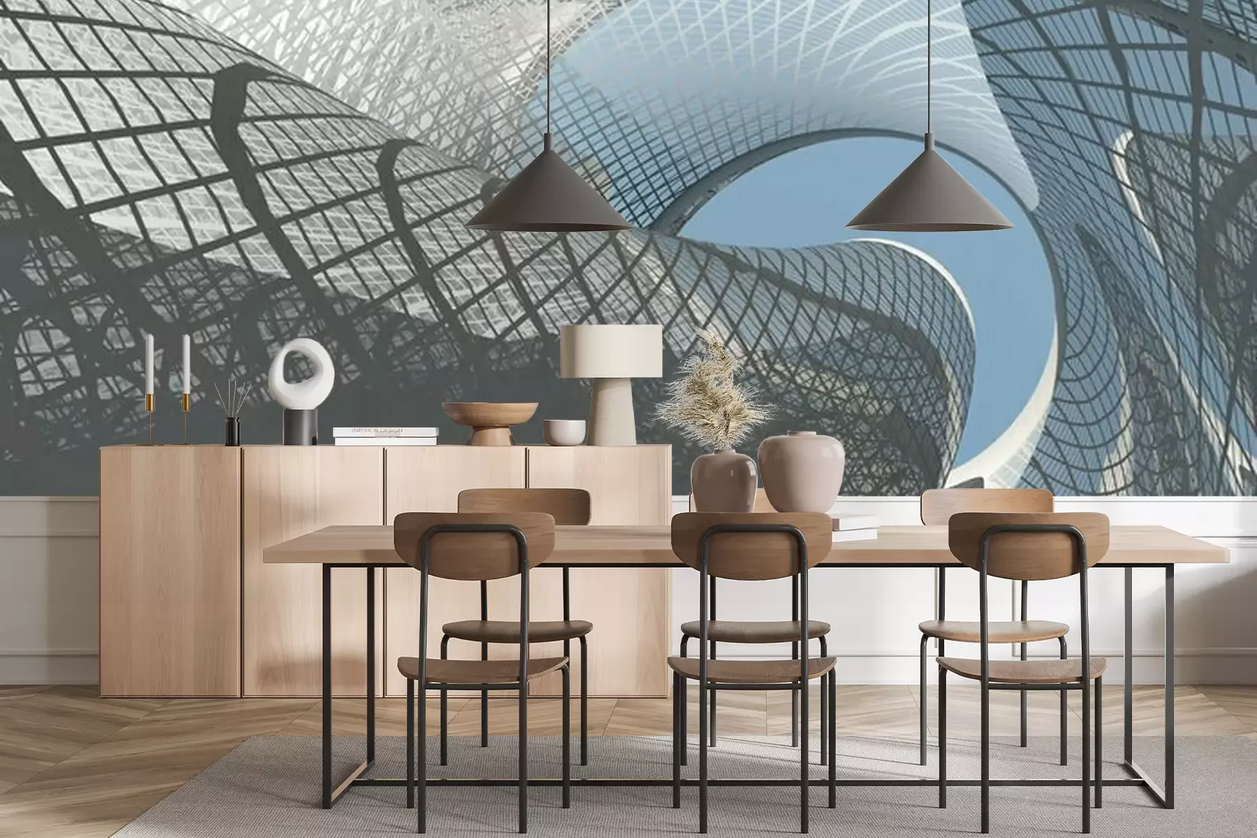 Het materiaal Premium+ is een gestructureerd vinyl op vlies met een gewicht van 255 g/m², dat kleine oneffenheden in de muur effectief camoufleert. De subtiele structuur van fijn zand geeft het oppervlak een exclusieve uitstraling, terwijl de halfmatte afwerking de diepte van de kleuren benadrukt. Het materiaal is dampdoorlatend, waardoor het ook in de keuken en badkamer kan worden gebruikt. De maximale breedte van één baan bedraagt 100 cm – bij grotere afmetingen wordt het fotobehang in meerdere gelijke banen verdeeld. De lijm wordt direct op de muur aangebracht en het behang wordt rand-aan-rand geplakt, wat zorgt voor een esthetisch resultaat zonder zichtbare naden. Het oppervlak kan gemakkelijk worden schoongemaakt door het voorzichtig af te nemen met een vochtige doek.