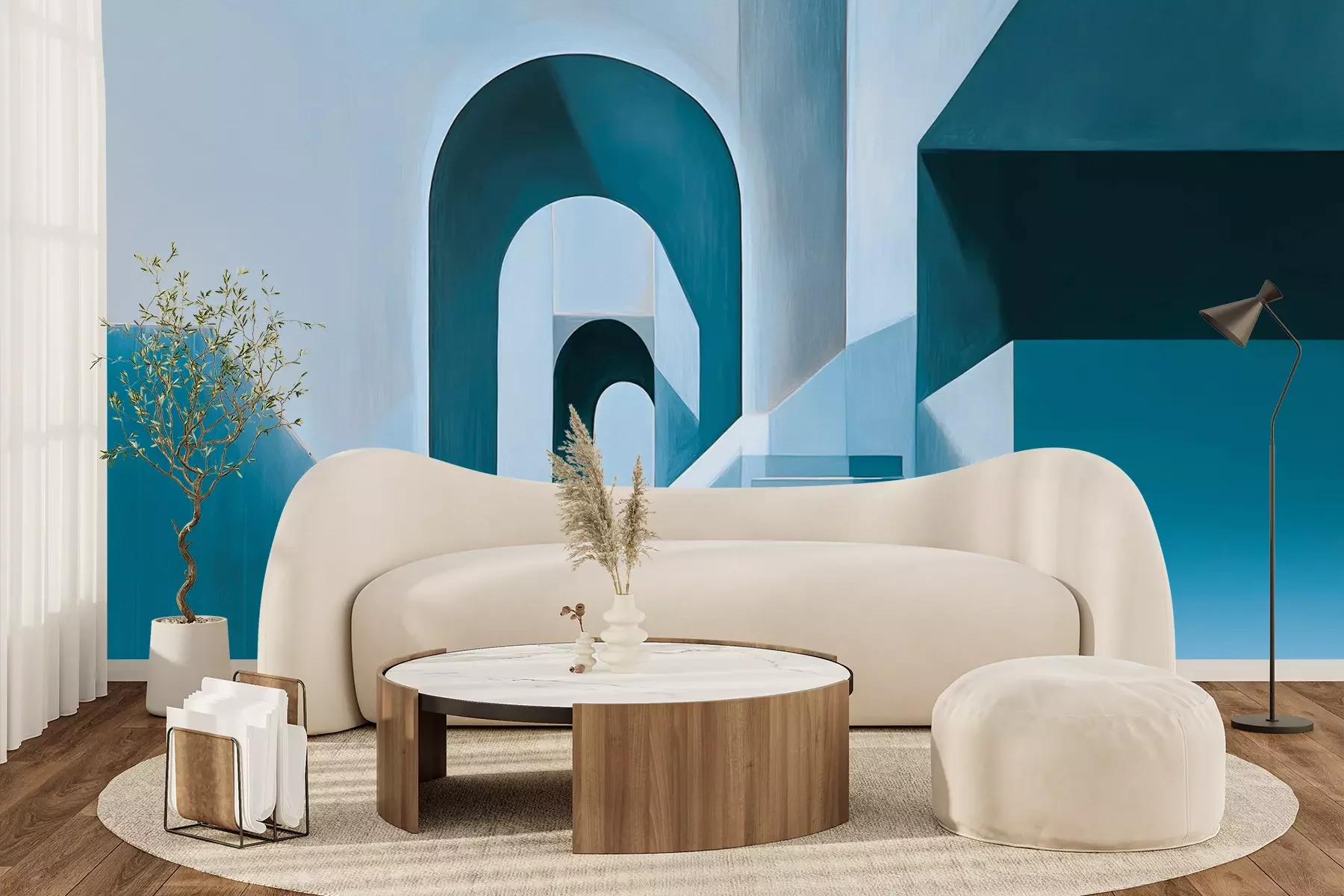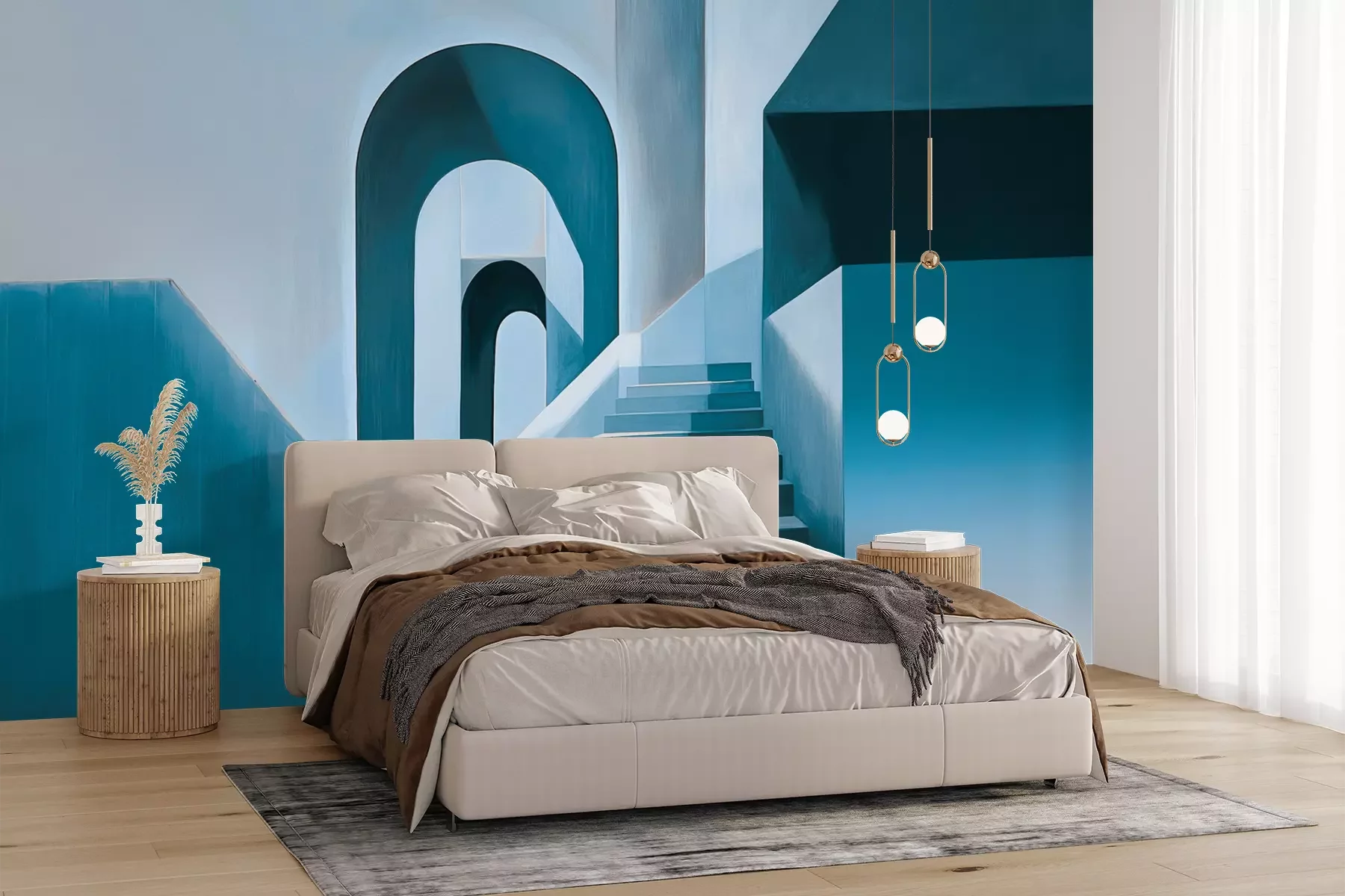 Het materiaal Premium+ is een gestructureerd vinyl op vlies met een gewicht van 255 g/m², dat kleine oneffenheden in de muur effectief camoufleert. De subtiele structuur van fijn zand geeft het oppervlak een exclusieve uitstraling, terwijl de halfmatte afwerking de diepte van de kleuren benadrukt. Het materiaal is dampdoorlatend, waardoor het ook in de keuken en badkamer kan worden gebruikt. De maximale breedte van één baan bedraagt 100 cm – bij grotere afmetingen wordt het fotobehang in meerdere gelijke banen verdeeld. De lijm wordt direct op de muur aangebracht en het behang wordt rand-aan-rand geplakt, wat zorgt voor een esthetisch resultaat zonder zichtbare naden. Het oppervlak kan gemakkelijk worden schoongemaakt door het voorzichtig af te nemen met een vochtige doek.