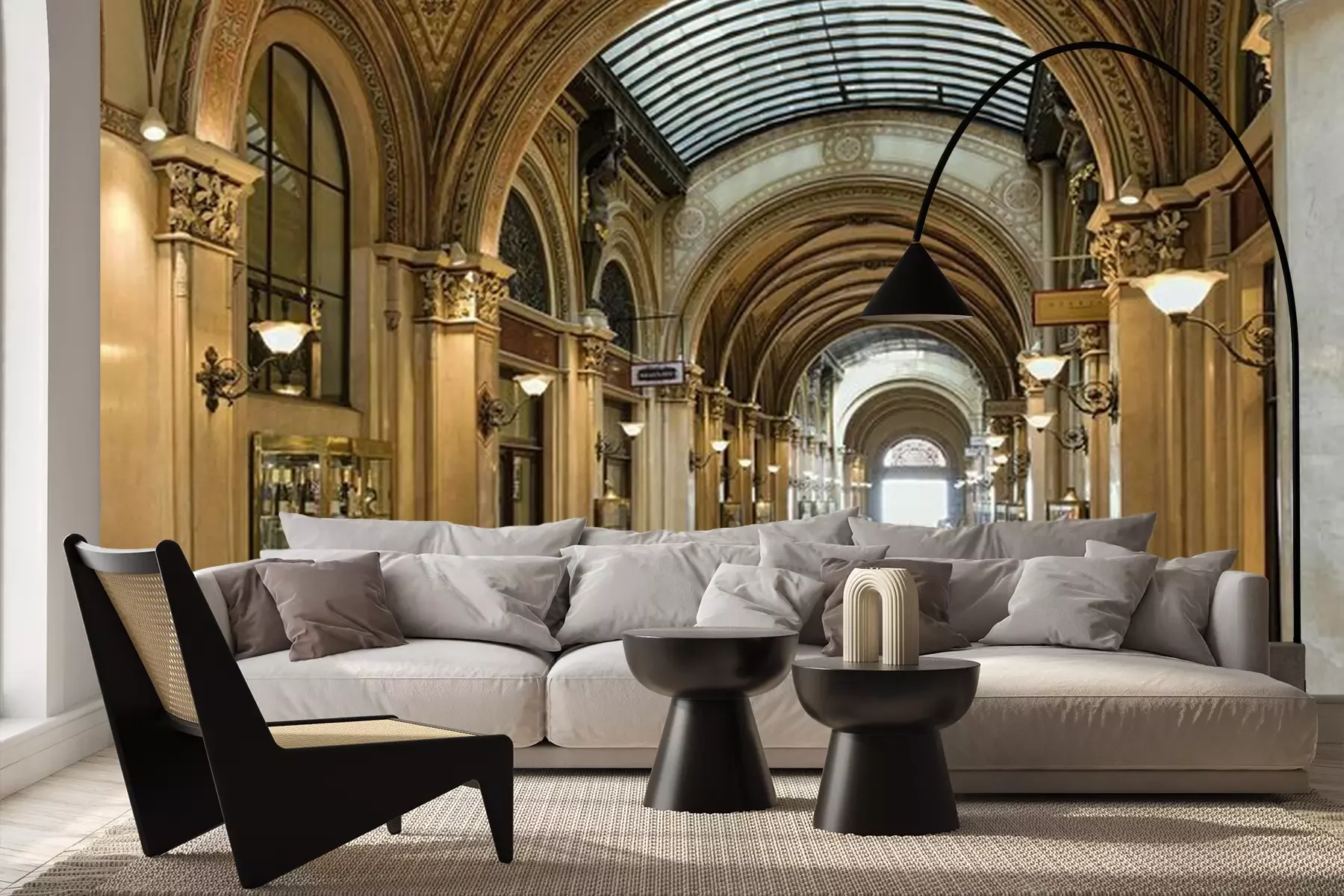 Het materiaal Premium+ is een gestructureerd vinyl op vlies met een gewicht van 255 g/m², dat kleine oneffenheden in de muur effectief camoufleert. De subtiele structuur van fijn zand geeft het oppervlak een exclusieve uitstraling, terwijl de halfmatte afwerking de diepte van de kleuren benadrukt. Het materiaal is dampdoorlatend, waardoor het ook in de keuken en badkamer kan worden gebruikt. De maximale breedte van één baan bedraagt 100 cm – bij grotere afmetingen wordt het fotobehang in meerdere gelijke banen verdeeld. De lijm wordt direct op de muur aangebracht en het behang wordt rand-aan-rand geplakt, wat zorgt voor een esthetisch resultaat zonder zichtbare naden. Het oppervlak kan gemakkelijk worden schoongemaakt door het voorzichtig af te nemen met een vochtige doek.