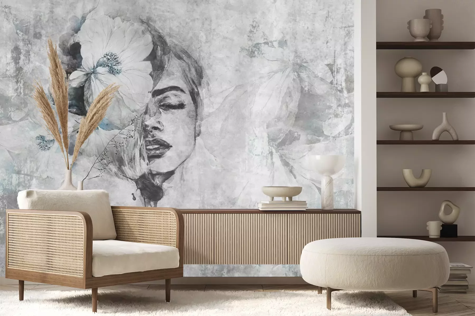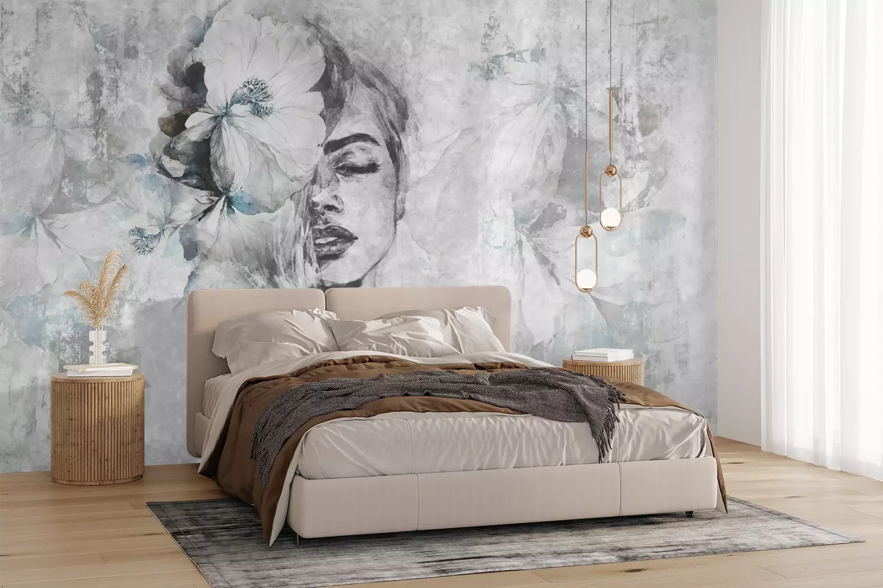 Het materiaal Premium+ is een gestructureerd vinyl op vlies met een gewicht van 255 g/m², dat kleine oneffenheden in de muur effectief camoufleert. De subtiele structuur van fijn zand geeft het oppervlak een exclusieve uitstraling, terwijl de halfmatte afwerking de diepte van de kleuren benadrukt. Het materiaal is dampdoorlatend, waardoor het ook in de keuken en badkamer kan worden gebruikt. De maximale breedte van één baan bedraagt 100 cm – bij grotere afmetingen wordt het fotobehang in meerdere gelijke banen verdeeld. De lijm wordt direct op de muur aangebracht en het behang wordt rand-aan-rand geplakt, wat zorgt voor een esthetisch resultaat zonder zichtbare naden. Het oppervlak kan gemakkelijk worden schoongemaakt door het voorzichtig af te nemen met een vochtige doek.