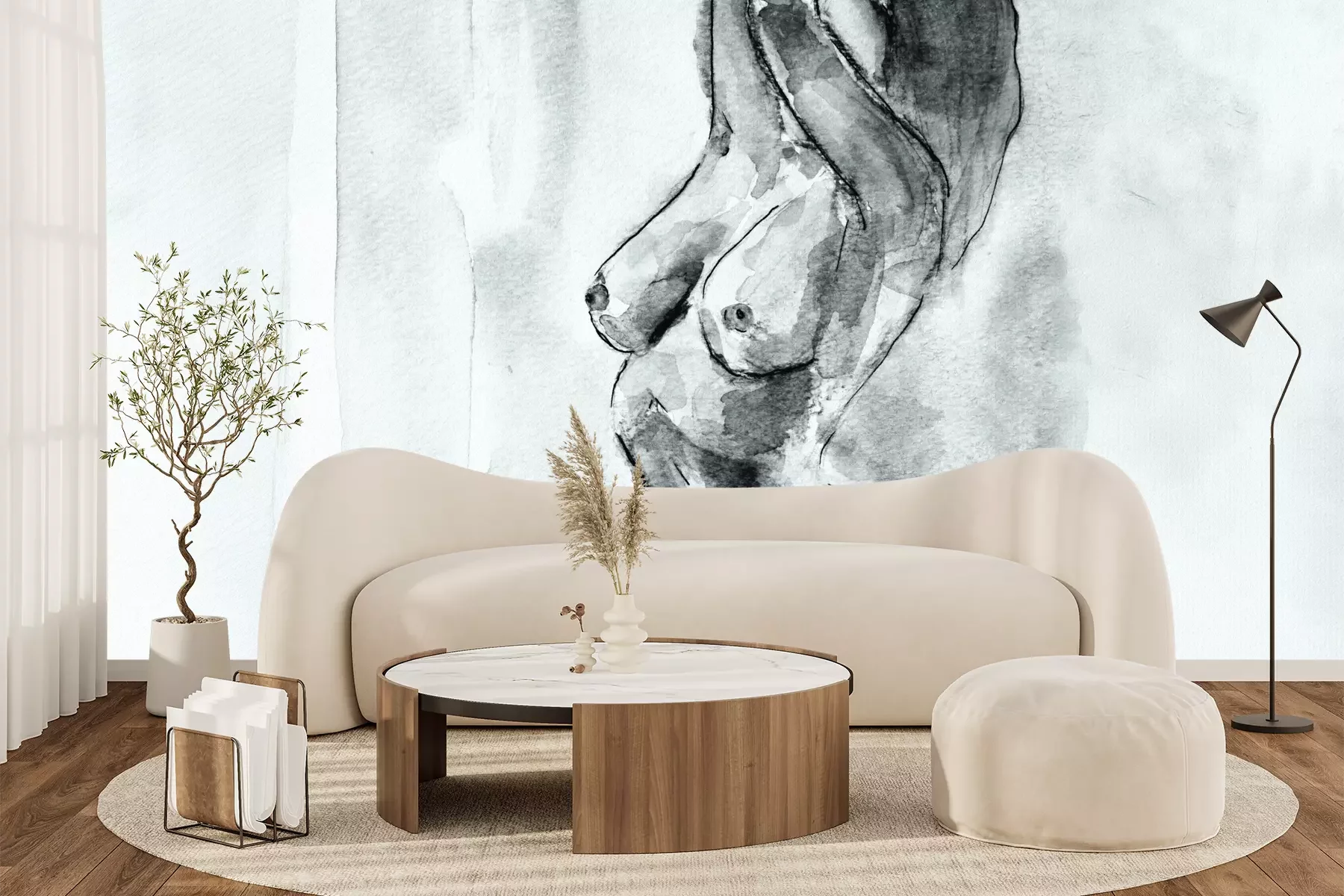 Het materiaal Premium+ is een gestructureerd vinyl op vlies met een gewicht van 255 g/m², dat kleine oneffenheden in de muur effectief camoufleert. De subtiele structuur van fijn zand geeft het oppervlak een exclusieve uitstraling, terwijl de halfmatte afwerking de diepte van de kleuren benadrukt. Het materiaal is dampdoorlatend, waardoor het ook in de keuken en badkamer kan worden gebruikt. De maximale breedte van één baan bedraagt 100 cm – bij grotere afmetingen wordt het fotobehang in meerdere gelijke banen verdeeld. De lijm wordt direct op de muur aangebracht en het behang wordt rand-aan-rand geplakt, wat zorgt voor een esthetisch resultaat zonder zichtbare naden. Het oppervlak kan gemakkelijk worden schoongemaakt door het voorzichtig af te nemen met een vochtige doek.