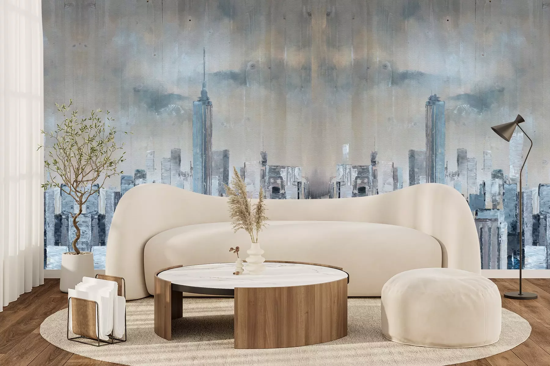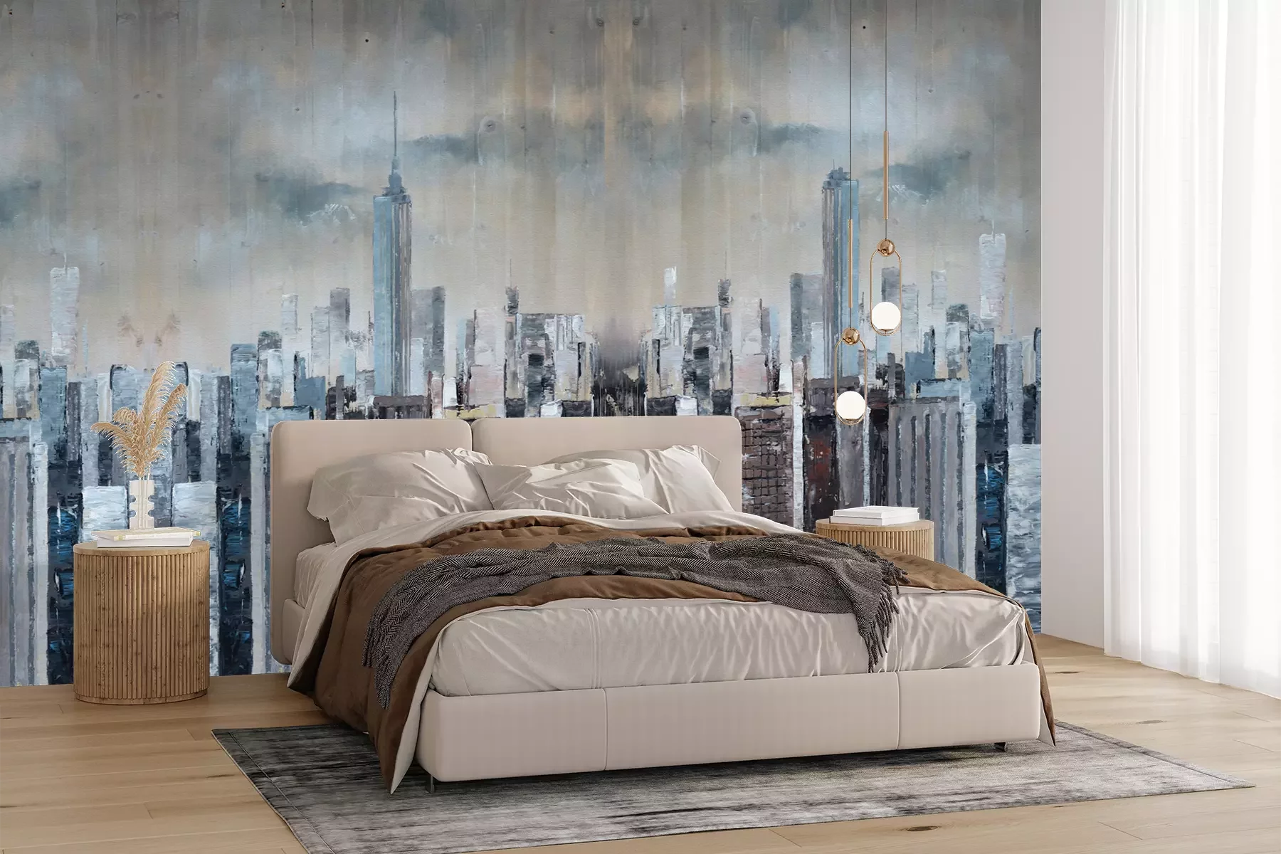 Het materiaal Premium+ is een gestructureerd vinyl op vlies met een gewicht van 255 g/m², dat kleine oneffenheden in de muur effectief camoufleert. De subtiele structuur van fijn zand geeft het oppervlak een exclusieve uitstraling, terwijl de halfmatte afwerking de diepte van de kleuren benadrukt. Het materiaal is dampdoorlatend, waardoor het ook in de keuken en badkamer kan worden gebruikt. De maximale breedte van één baan bedraagt 100 cm – bij grotere afmetingen wordt het fotobehang in meerdere gelijke banen verdeeld. De lijm wordt direct op de muur aangebracht en het behang wordt rand-aan-rand geplakt, wat zorgt voor een esthetisch resultaat zonder zichtbare naden. Het oppervlak kan gemakkelijk worden schoongemaakt door het voorzichtig af te nemen met een vochtige doek.