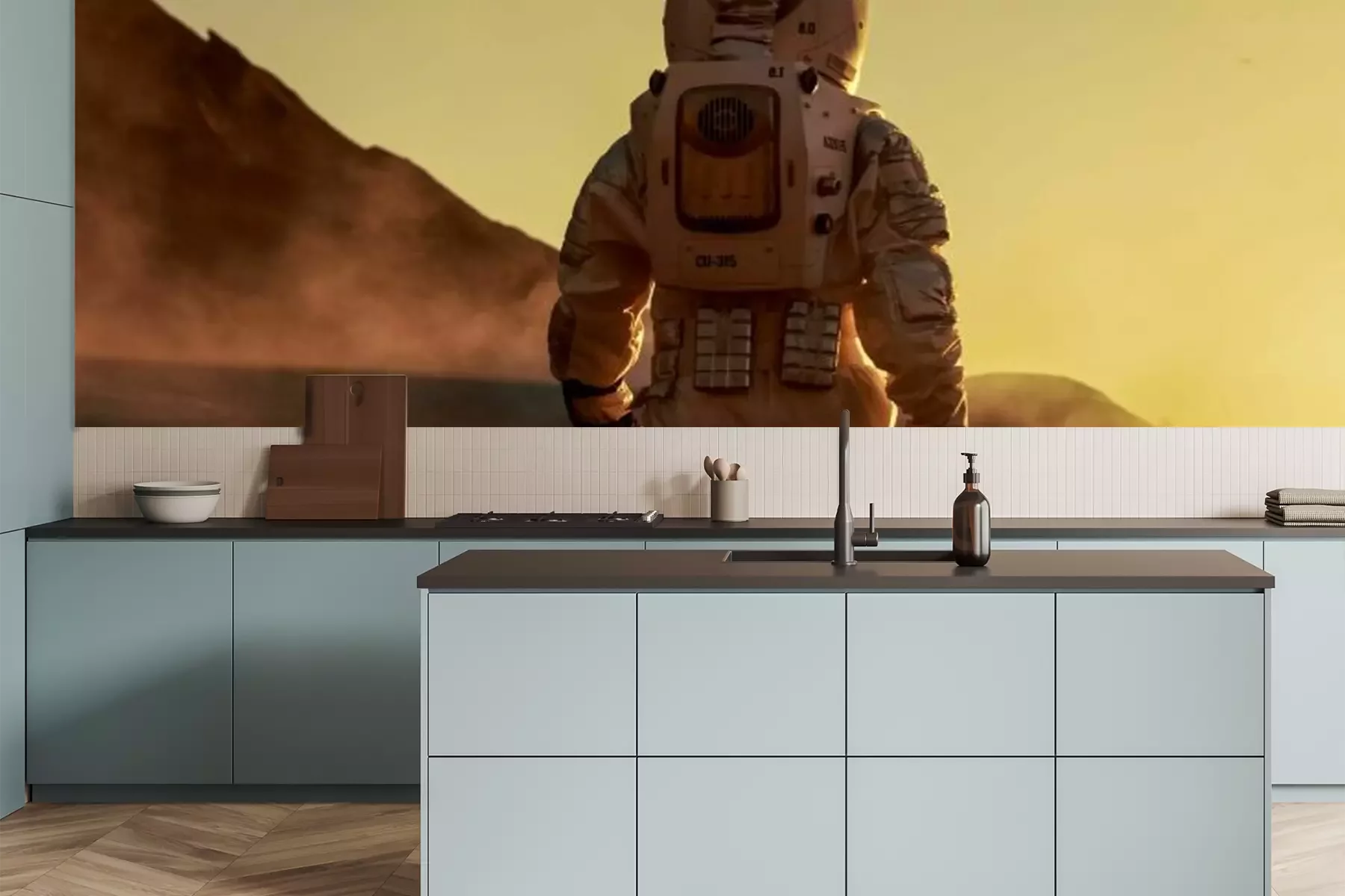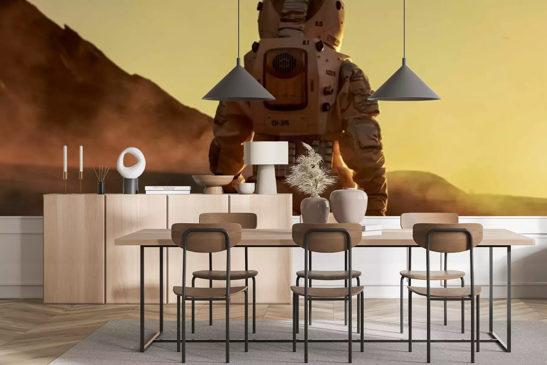Fotobehang Astronaut op Mars tijdens zonsondergang