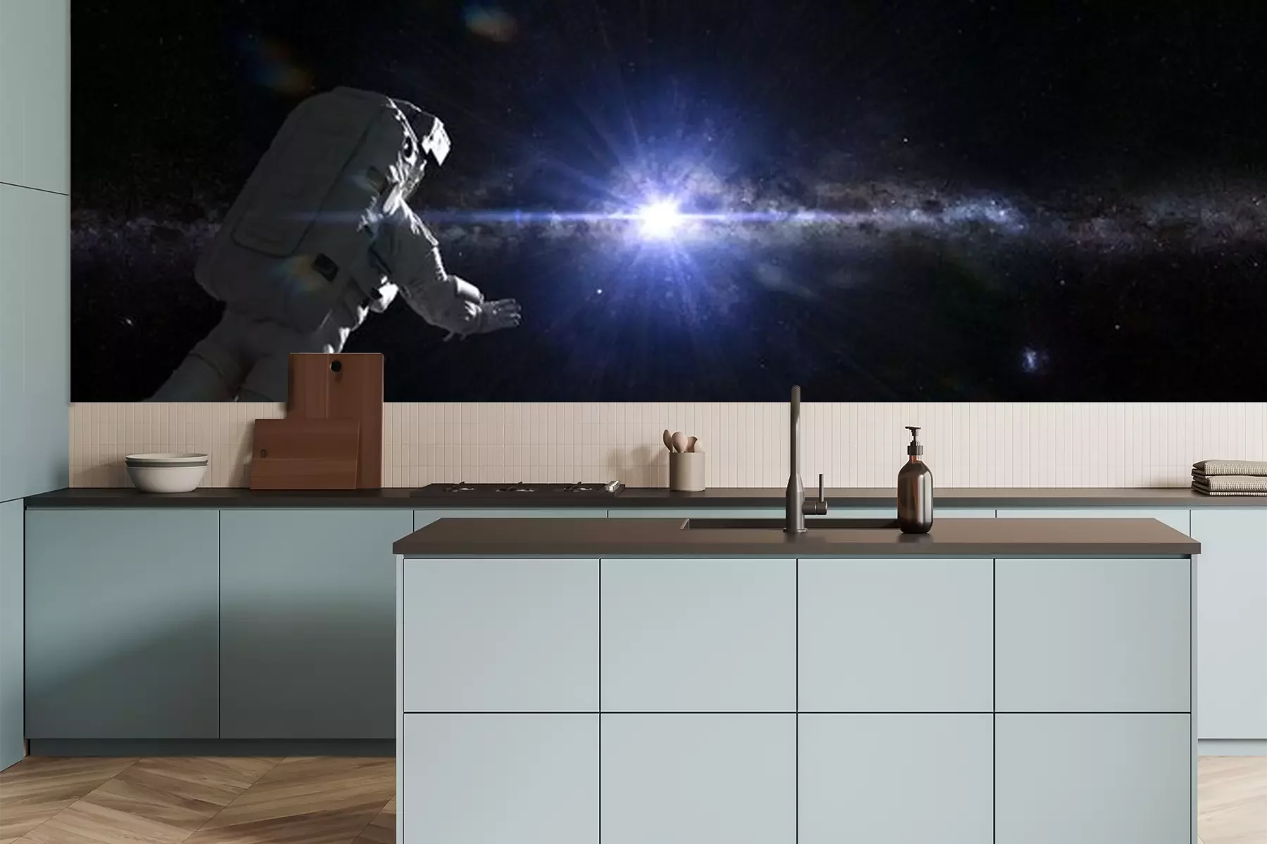 Fotobehang Astronaut voor de Melkweg