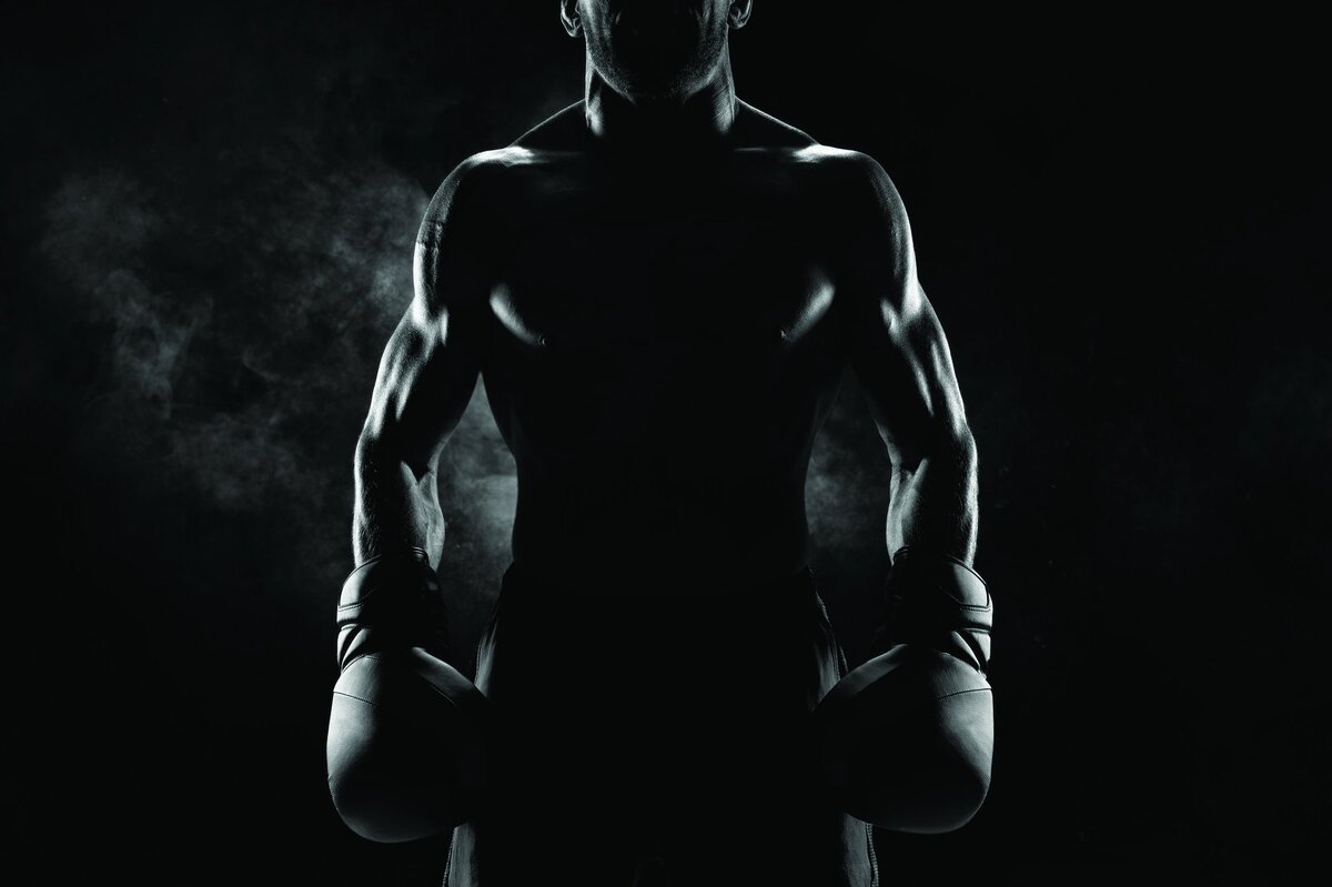 Fotobehang: Atleet met handschoenen tijdens de training