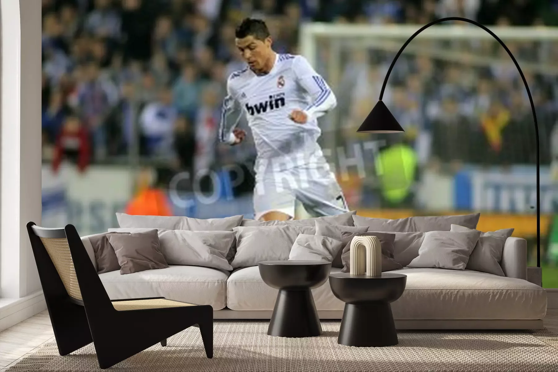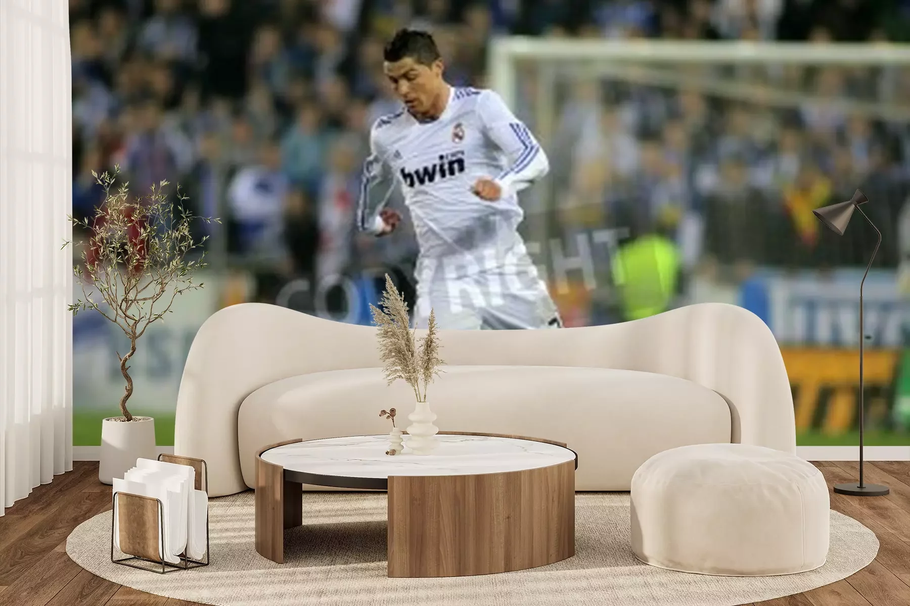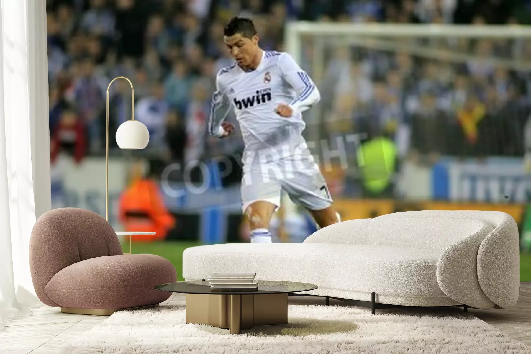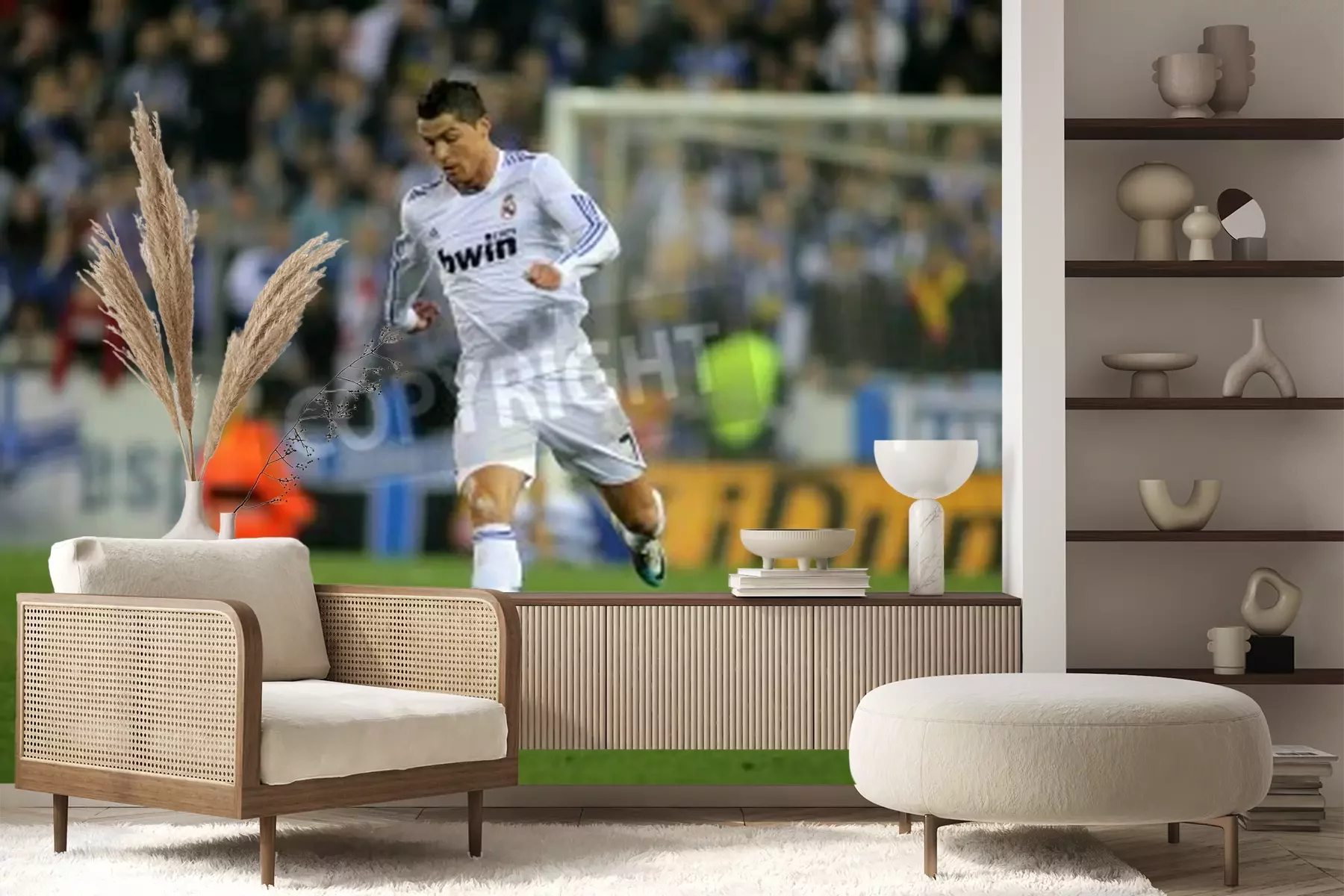 Fotobehang Atleet op het sportveld met de bal