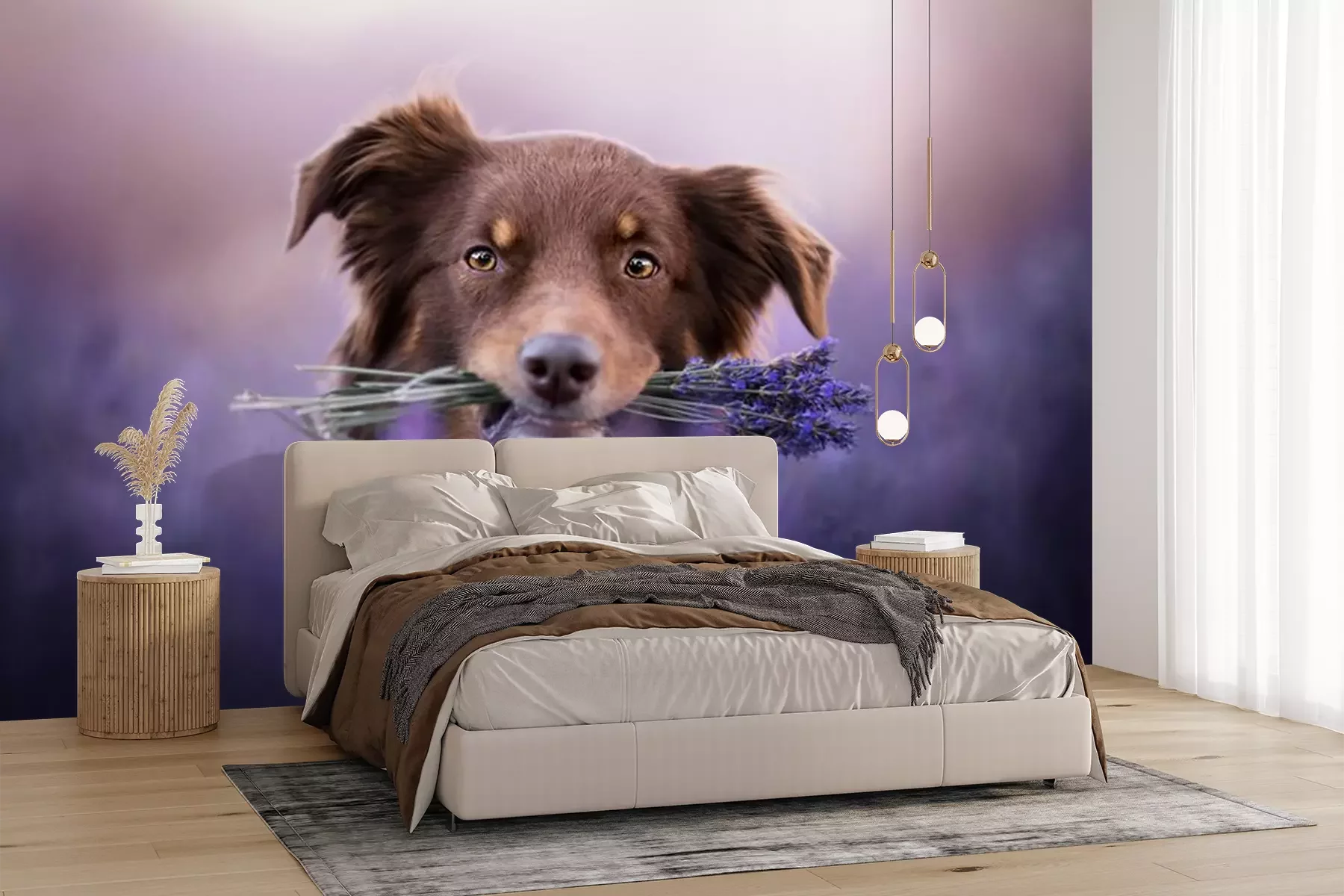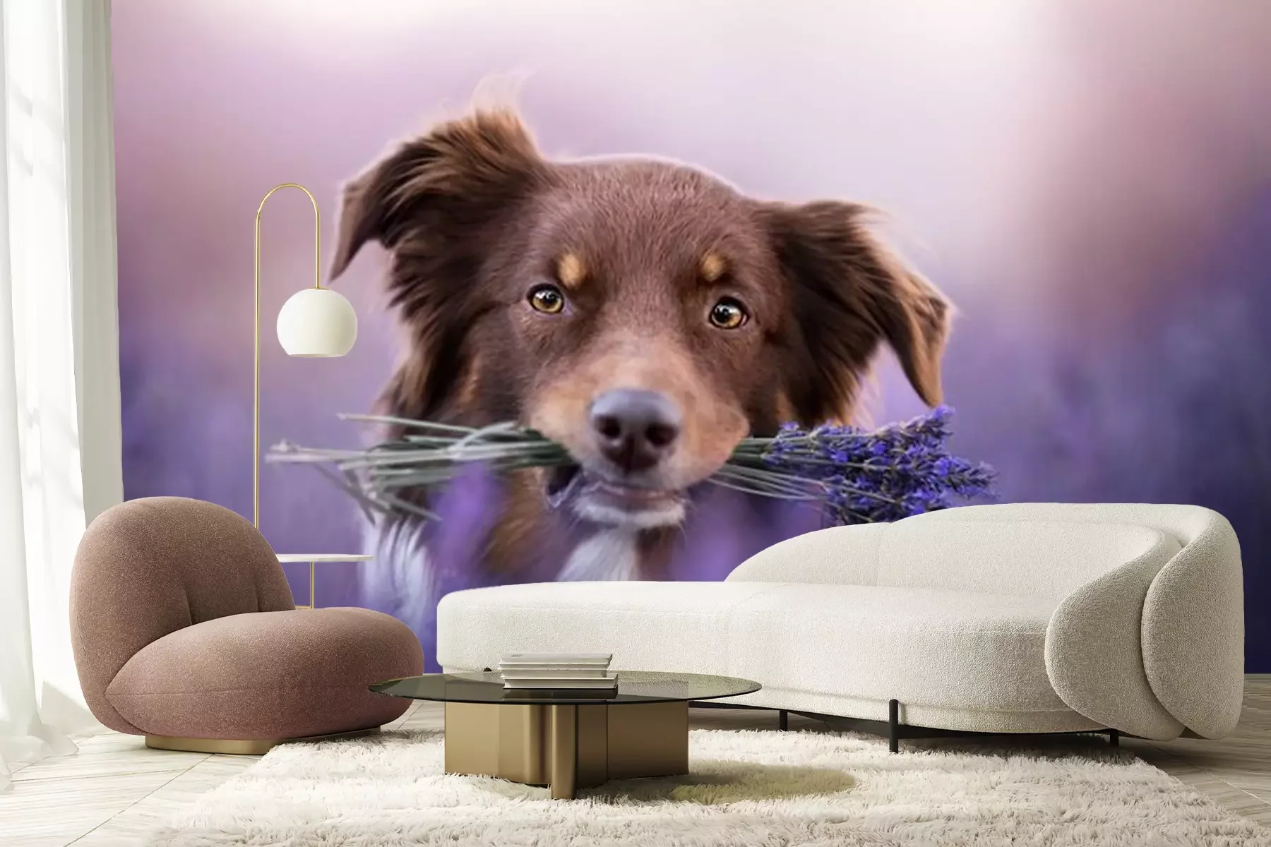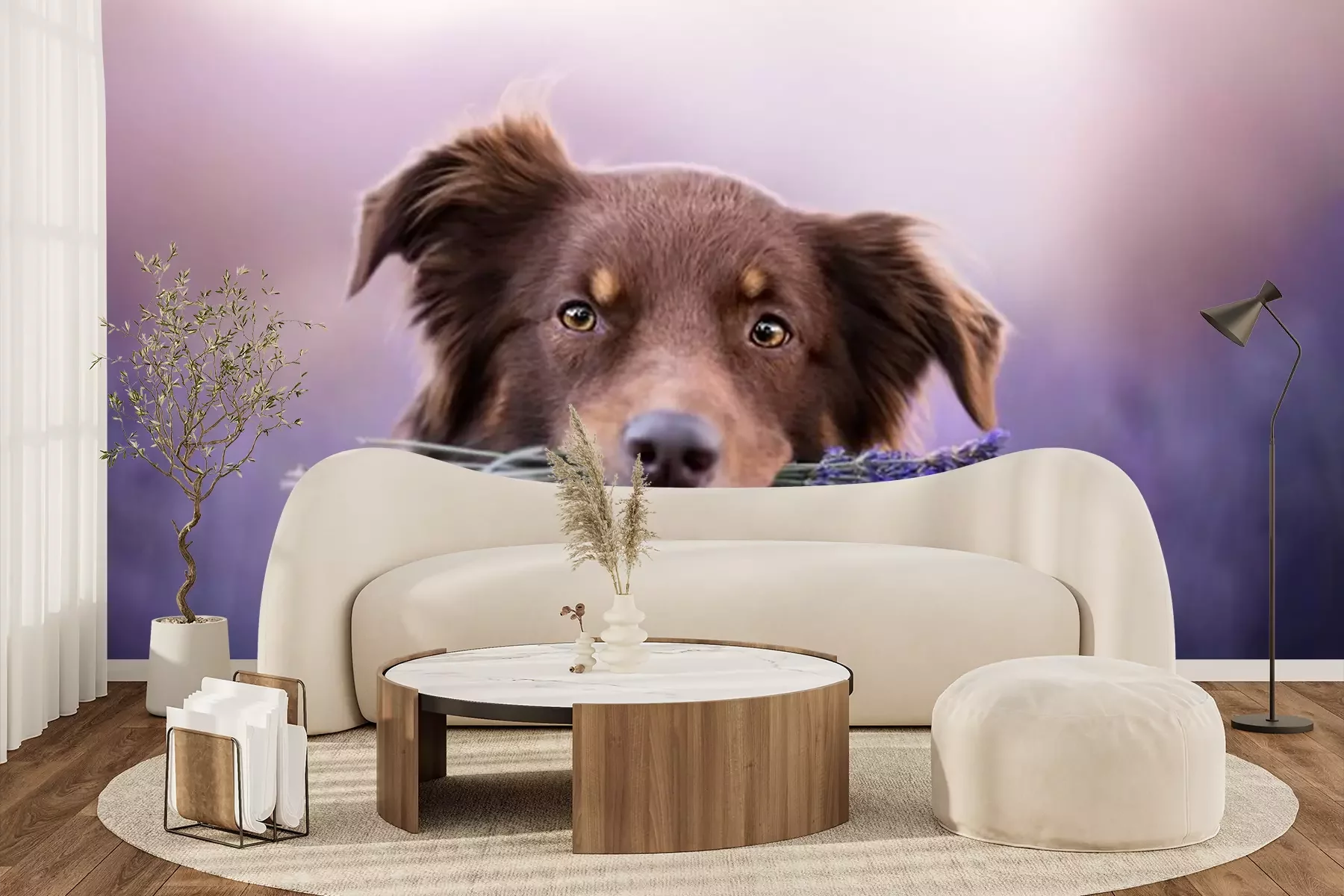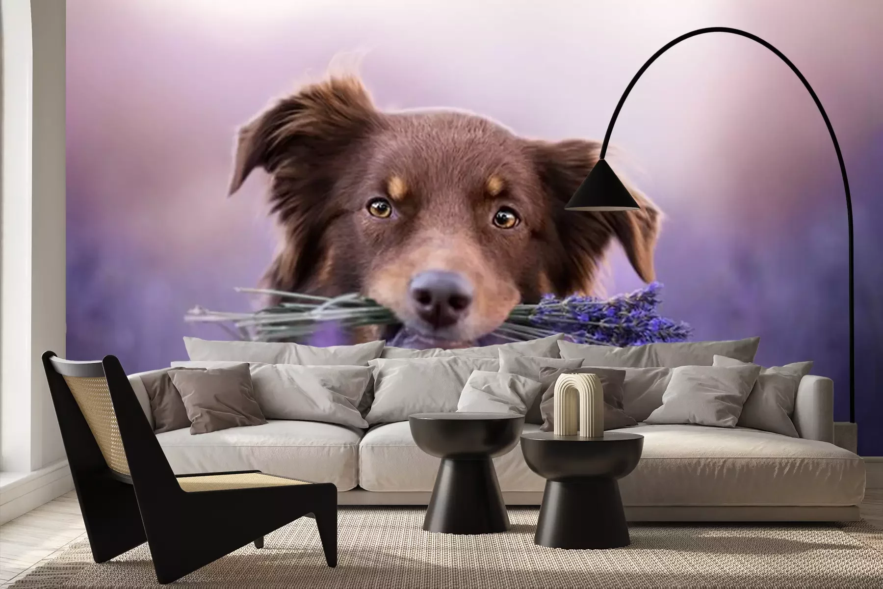 Fotobehang Australische herdershond in een lavendelveld