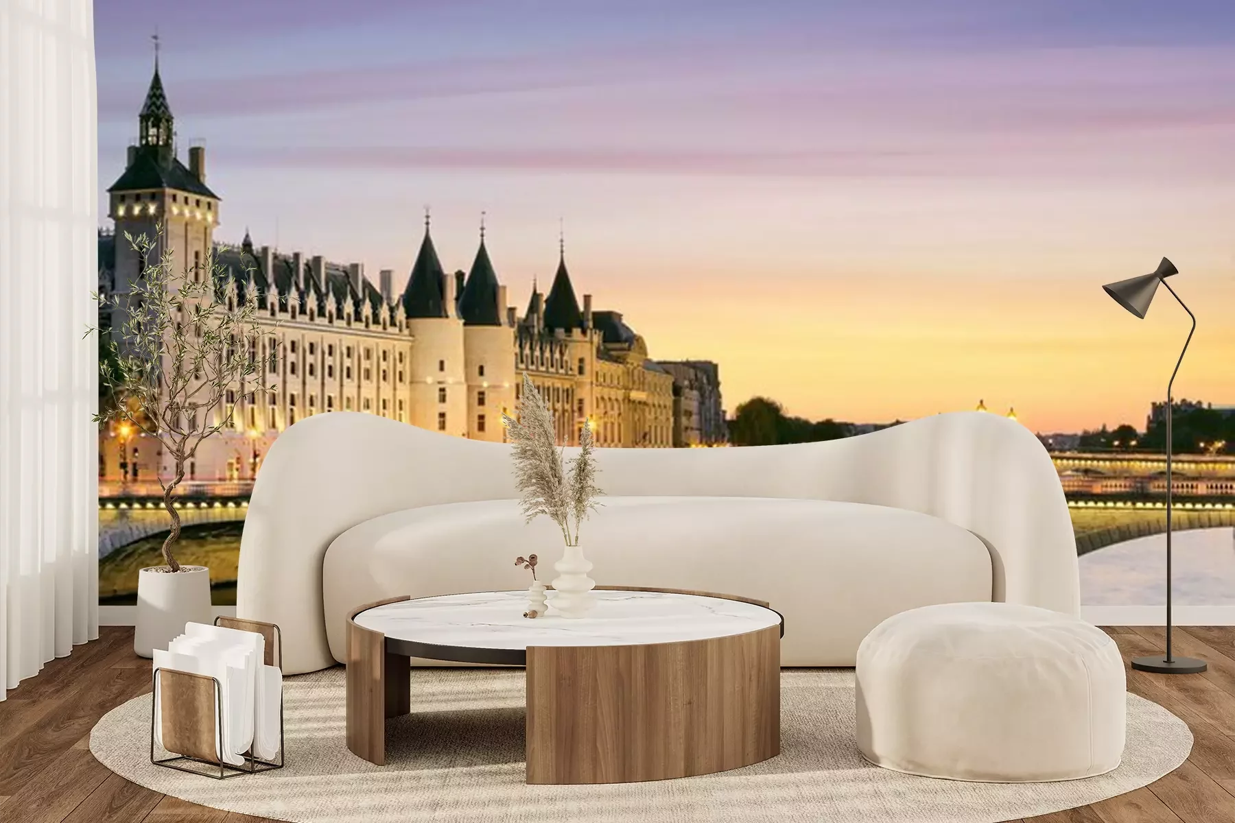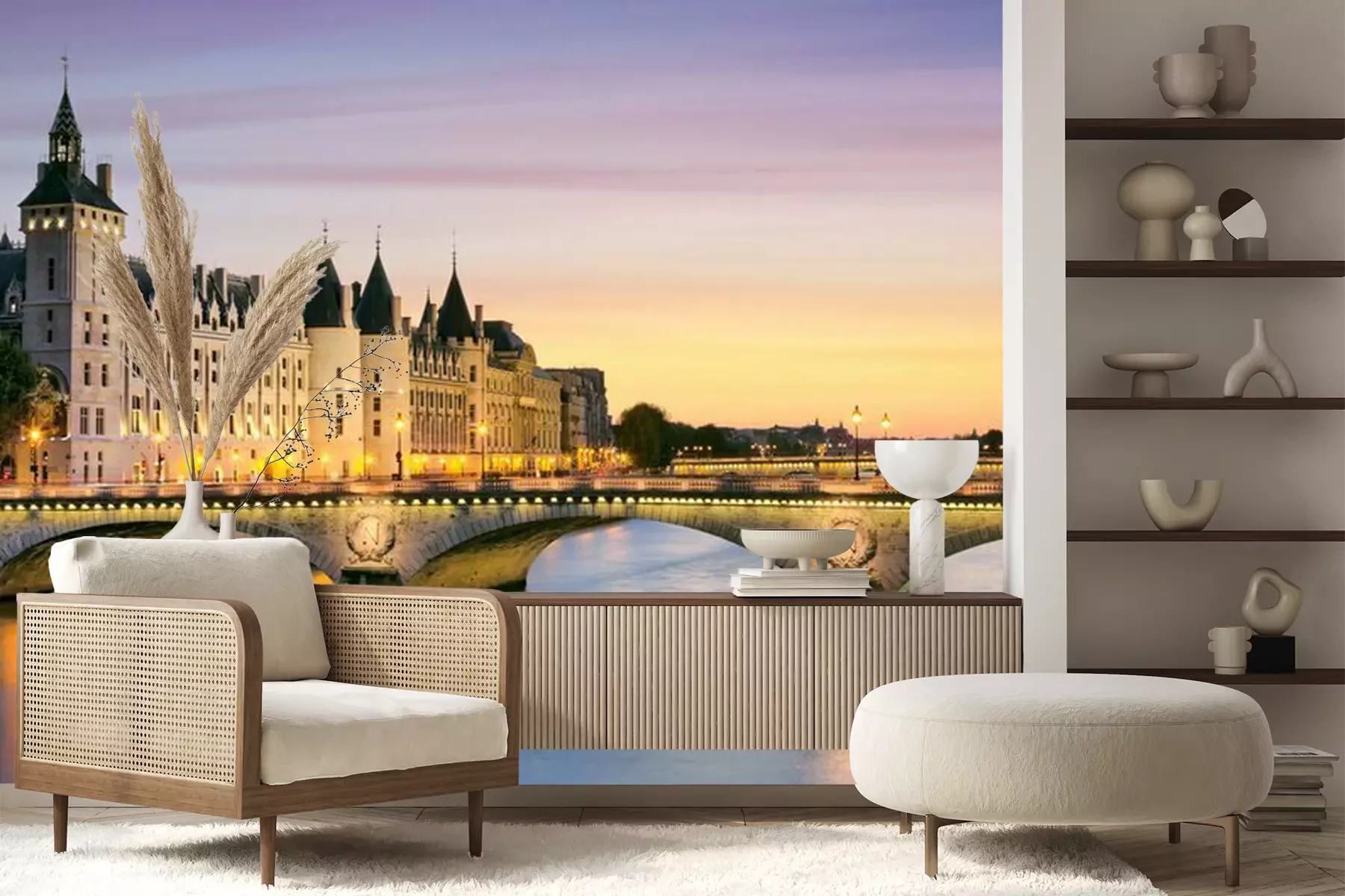 Fotobehang Avondlandschap van Parijse architectuur