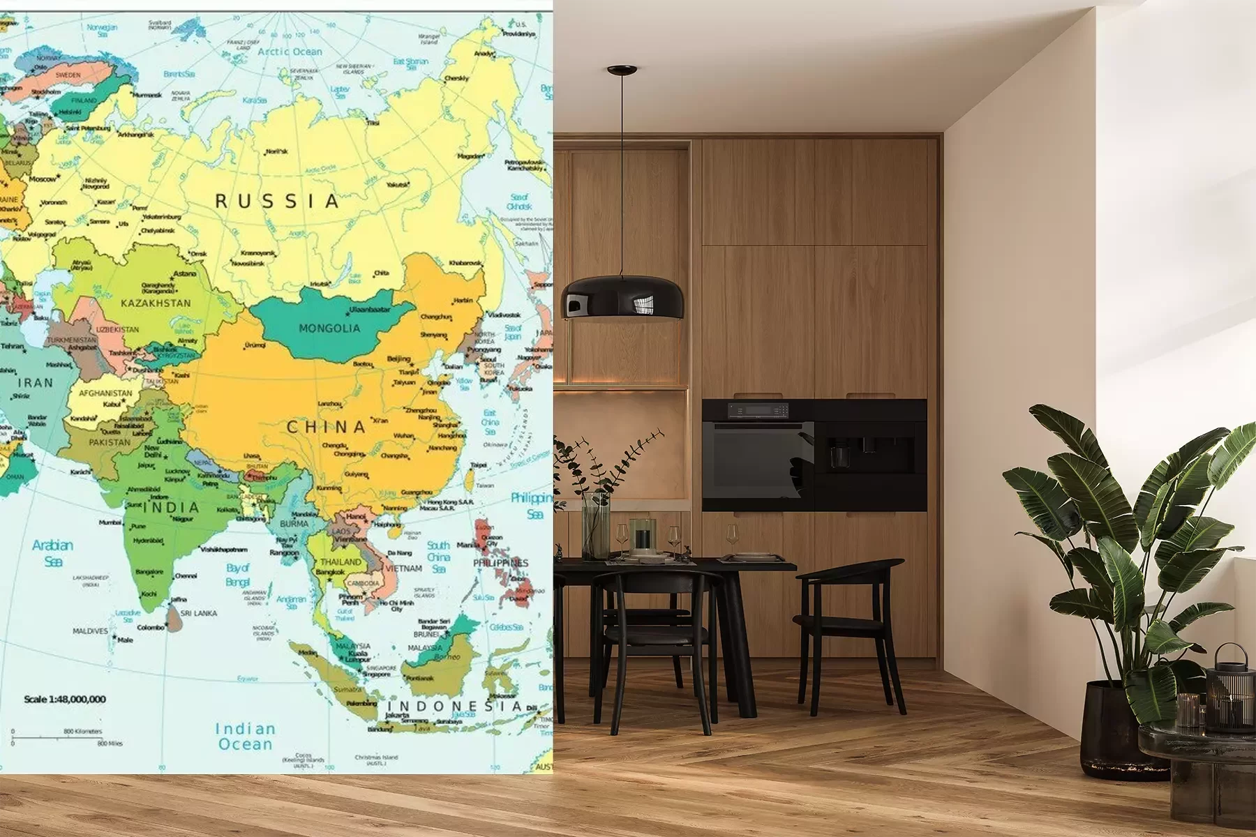 Het materiaal Premium is een glad vinyl op vlies, dat bestand is tegen uitrekken en vervorming. Het is dampdoorlatend – de muren kunnen vrij ademen – waardoor het geschikt is voor gebruik in de keuken en badkamer. Bij vervuiling kan het materiaal worden afgenomen met een vochtige doek. De maximale breedte van één baan bedraagt 95 of 105 cm, afhankelijk van de beschikbaarheid. Montage vindt plaats met de rand-aan-rand methode, wat een esthetisch resultaat zonder zichtbare naden oplevert. Omdat de lijm rechtstreeks op de muur wordt aangebracht, verloopt de installatie van het fotobehang snel en eenvoudig.