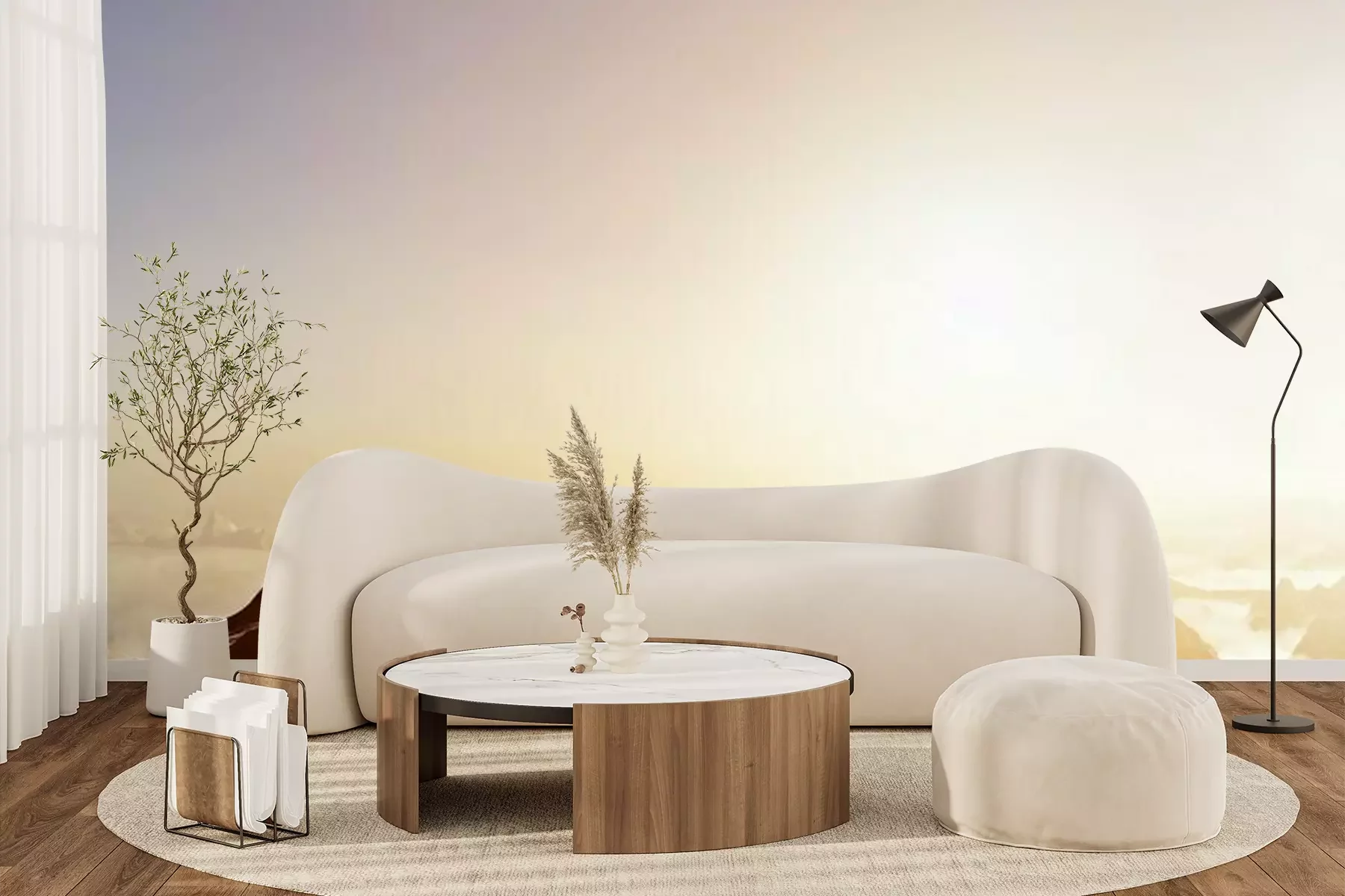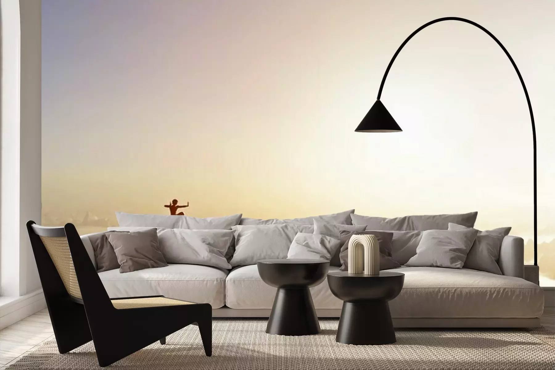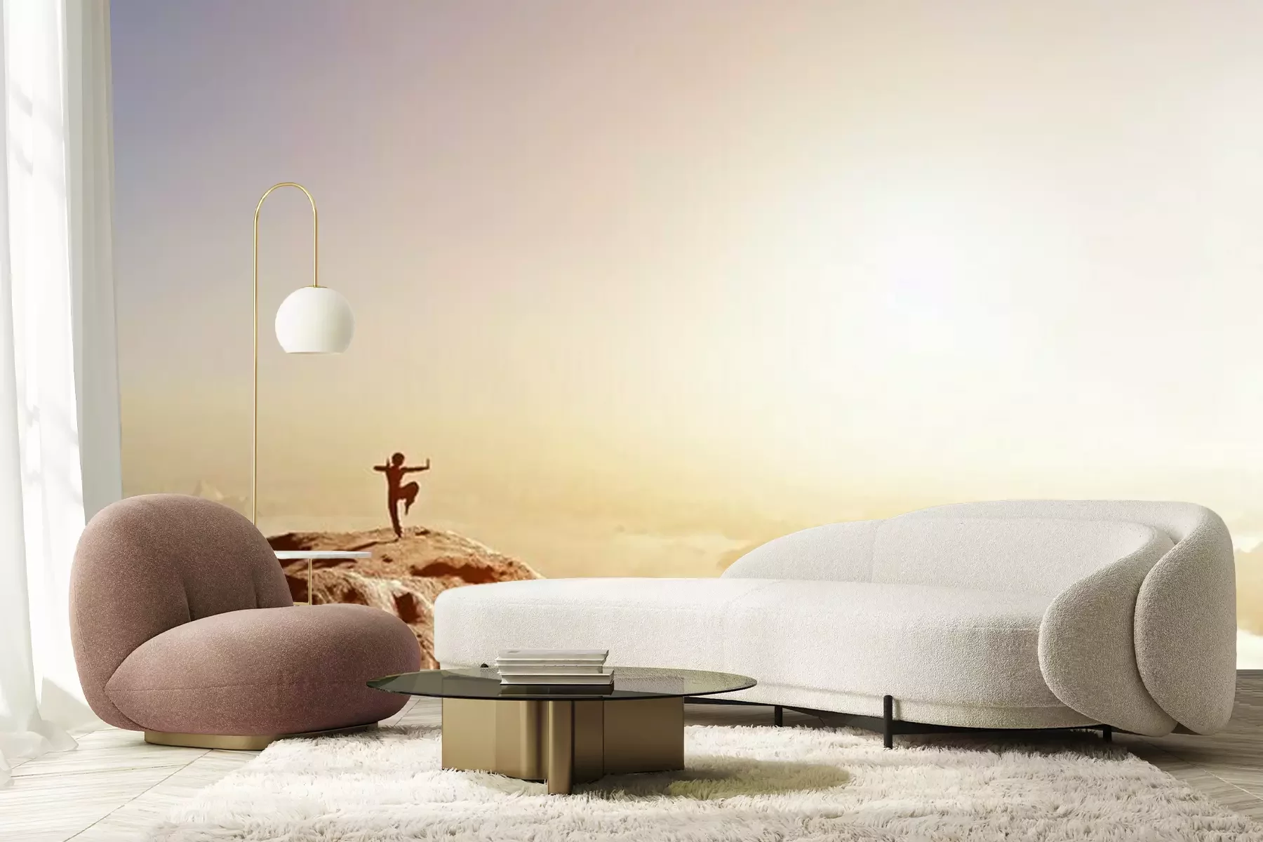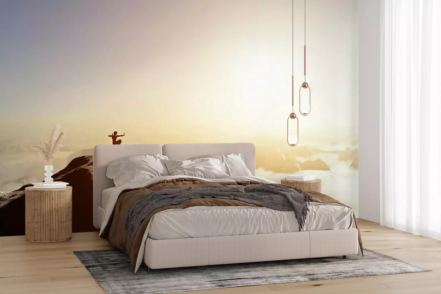 Fotobehang Aziatische man, vechter beoefent martial arts in het hooggebergte