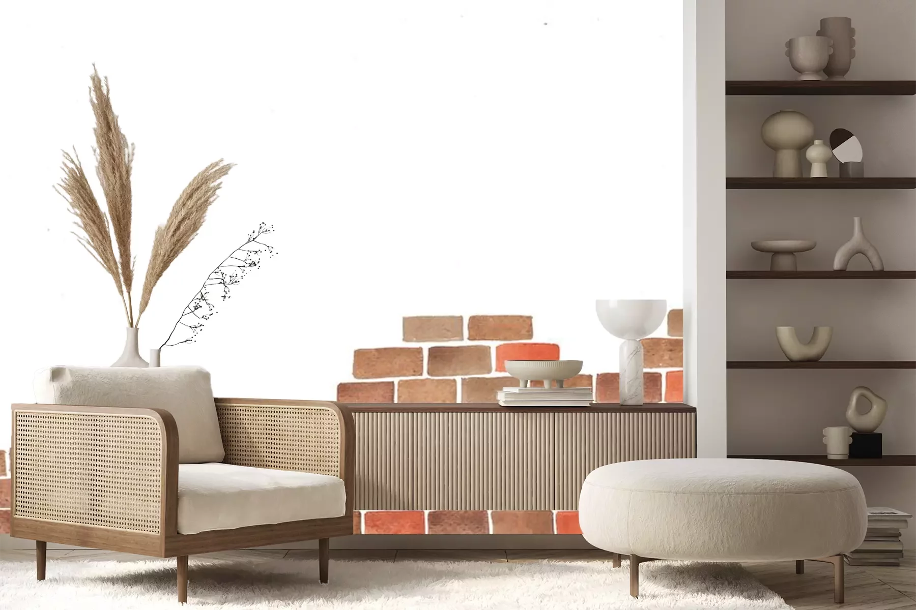 Fotobehang Bakstenen muur in opbouw
