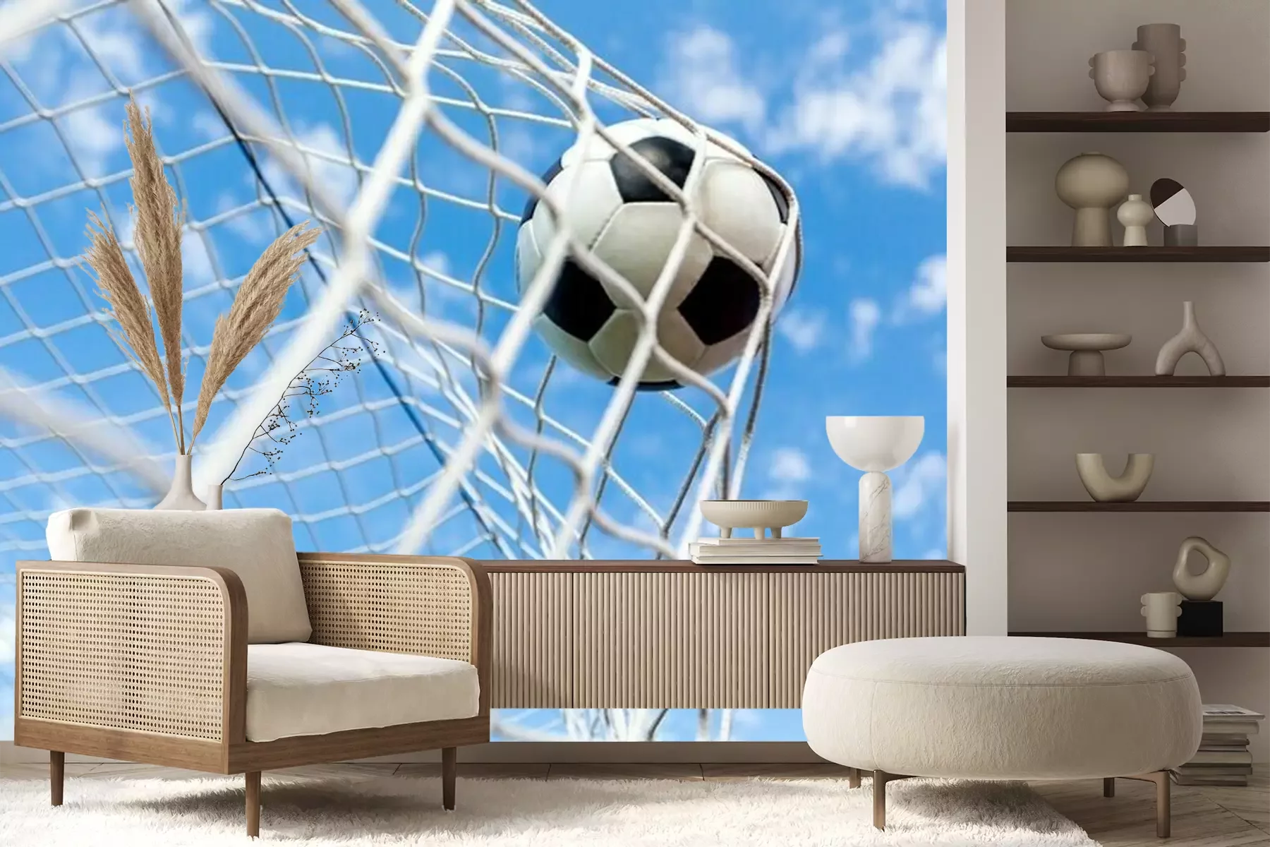 Het materiaal Premium+ is een gestructureerd vinyl op vlies met een gewicht van 255 g/m², dat kleine oneffenheden in de muur effectief camoufleert. De subtiele structuur van fijn zand geeft het oppervlak een exclusieve uitstraling, terwijl de halfmatte afwerking de diepte van de kleuren benadrukt. Het materiaal is dampdoorlatend, waardoor het ook in de keuken en badkamer kan worden gebruikt. De maximale breedte van één baan bedraagt 100 cm – bij grotere afmetingen wordt het fotobehang in meerdere gelijke banen verdeeld. De lijm wordt direct op de muur aangebracht en het behang wordt rand-aan-rand geplakt, wat zorgt voor een esthetisch resultaat zonder zichtbare naden. Het oppervlak kan gemakkelijk worden schoongemaakt door het voorzichtig af te nemen met een vochtige doek.