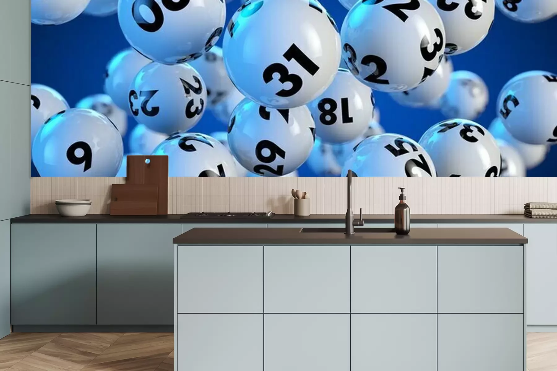 Het materiaal Premium is een glad vinyl op vlies, dat bestand is tegen uitrekken en vervorming. Het is dampdoorlatend – de muren kunnen vrij ademen – waardoor het geschikt is voor gebruik in de keuken en badkamer. Bij vervuiling kan het materiaal worden afgenomen met een vochtige doek. De maximale breedte van één baan bedraagt 95 of 105 cm, afhankelijk van de beschikbaarheid. Montage vindt plaats met de rand-aan-rand methode, wat een esthetisch resultaat zonder zichtbare naden oplevert. Omdat de lijm rechtstreeks op de muur wordt aangebracht, verloopt de installatie van het fotobehang snel en eenvoudig.