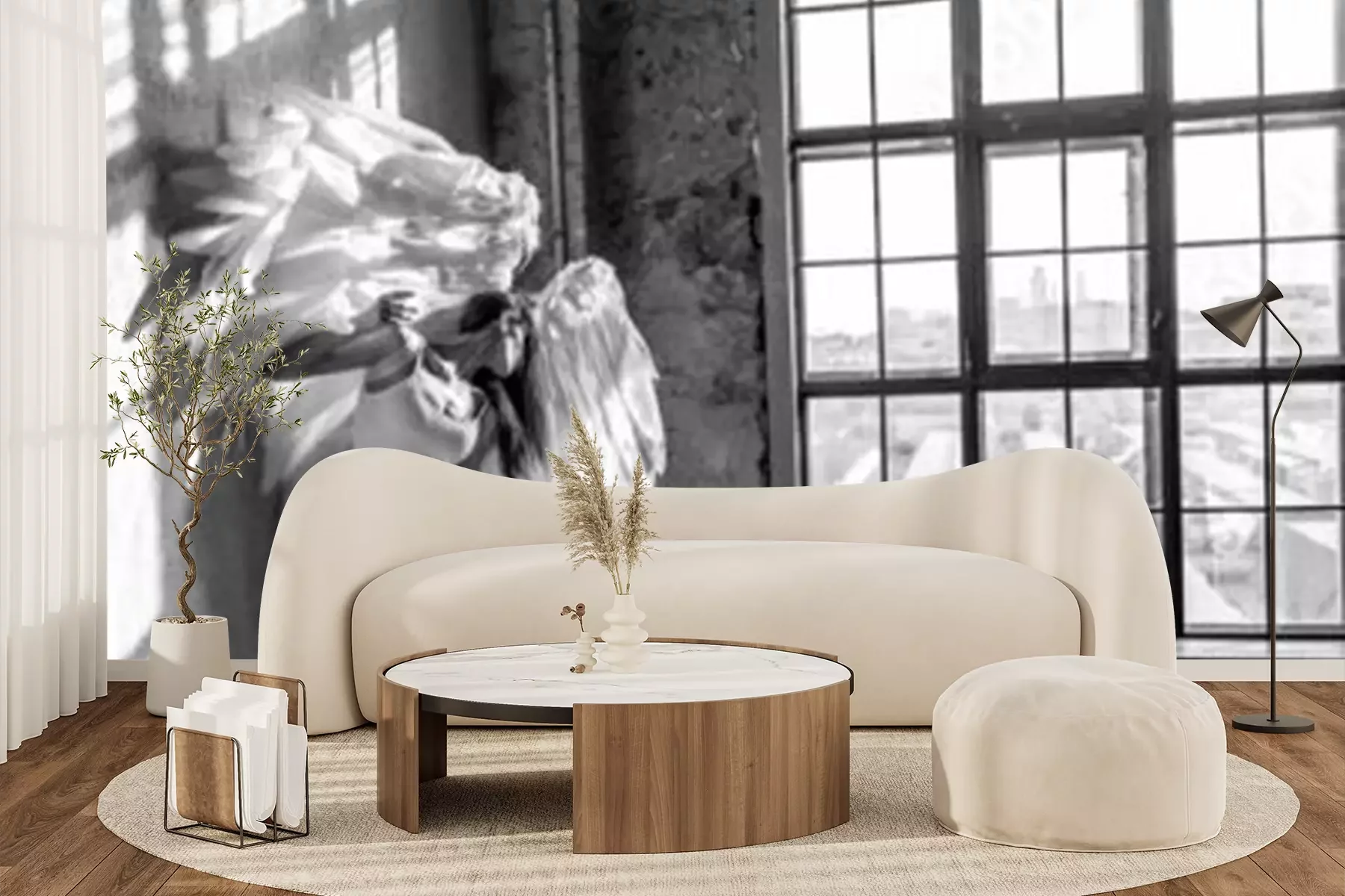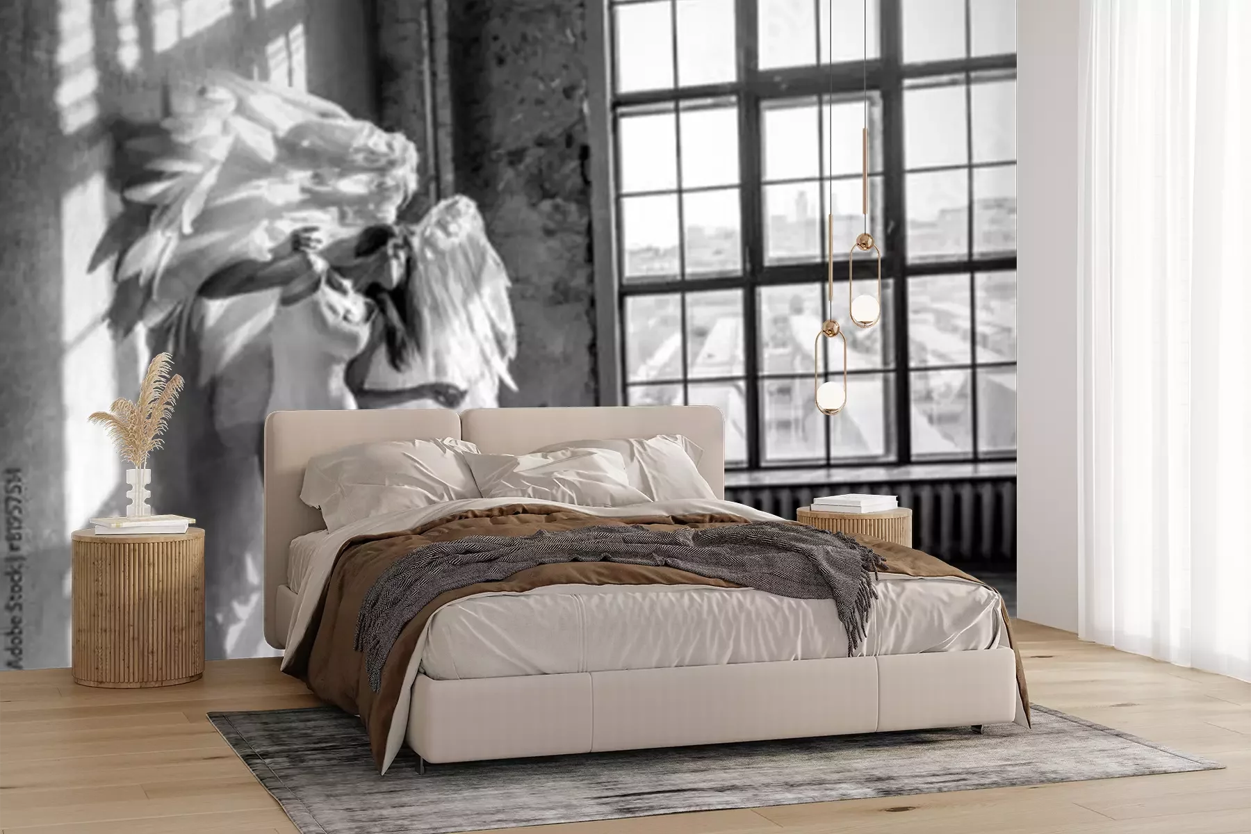 Het materiaal Premium+ is een gestructureerd vinyl op vlies met een gewicht van 255 g/m², dat kleine oneffenheden in de muur effectief camoufleert. De subtiele structuur van fijn zand geeft het oppervlak een exclusieve uitstraling, terwijl de halfmatte afwerking de diepte van de kleuren benadrukt. Het materiaal is dampdoorlatend, waardoor het ook in de keuken en badkamer kan worden gebruikt. De maximale breedte van één baan bedraagt 100 cm – bij grotere afmetingen wordt het fotobehang in meerdere gelijke banen verdeeld. De lijm wordt direct op de muur aangebracht en het behang wordt rand-aan-rand geplakt, wat zorgt voor een esthetisch resultaat zonder zichtbare naden. Het oppervlak kan gemakkelijk worden schoongemaakt door het voorzichtig af te nemen met een vochtige doek.