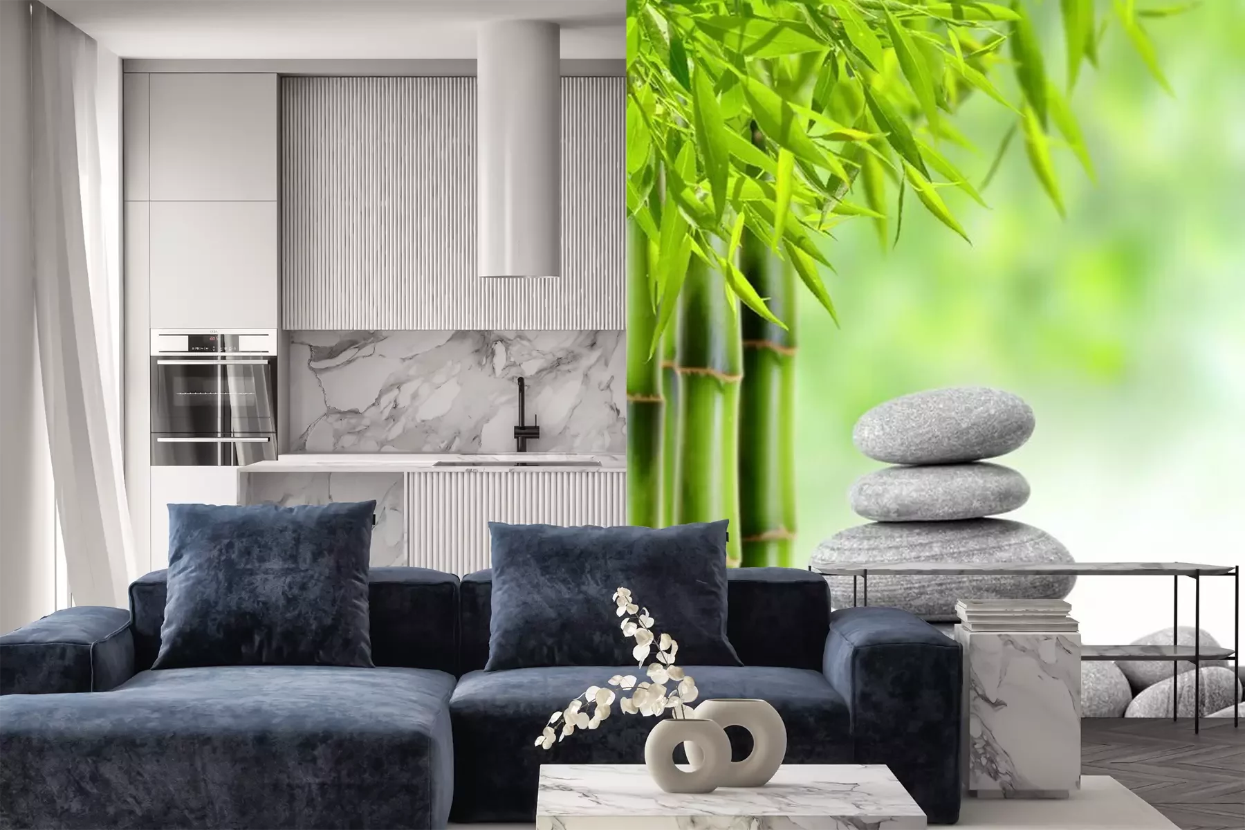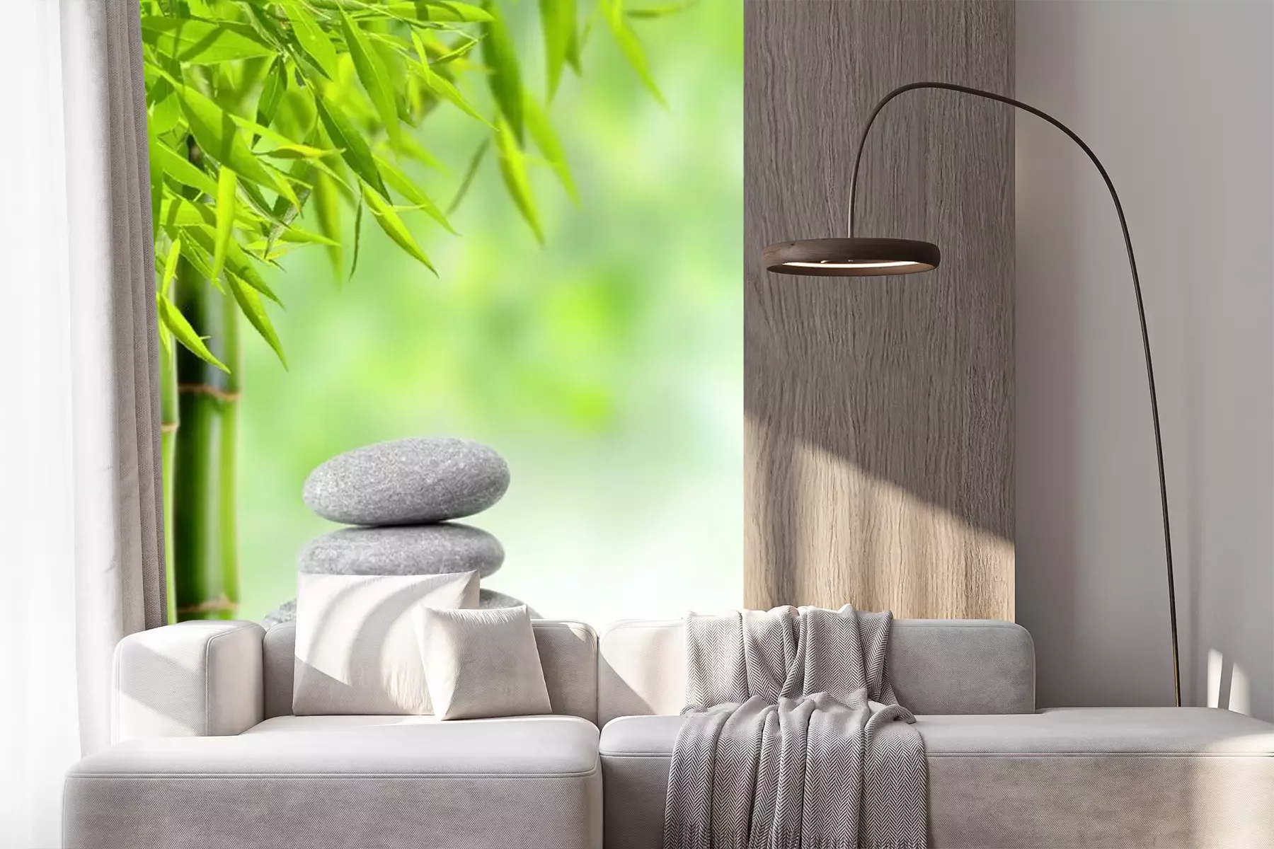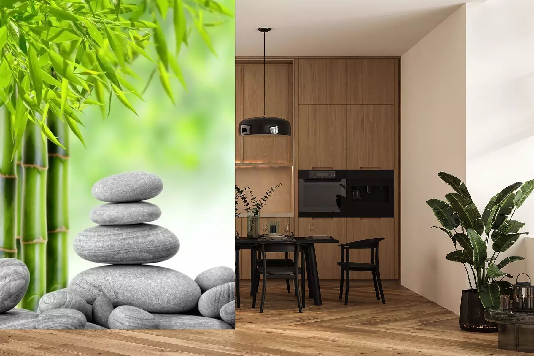Zwarte platte stenen en bamboeSticker