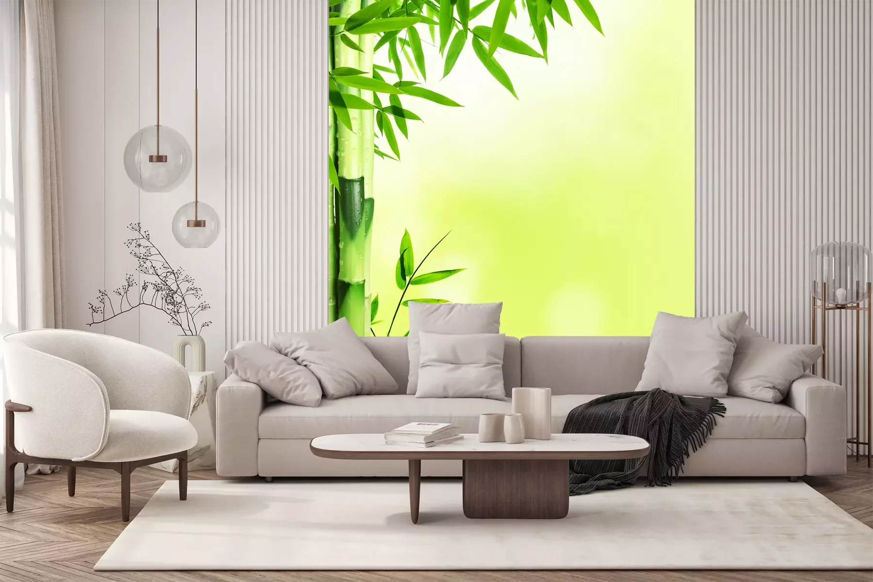 Het fotobehang wordt geleverd in banen. De afmetingen en het aantal banen waaruit het volledige fotobehang bestaat, zijn afhankelijk van het gekozen materiaal. Wanneer het formaat de maximale materiaalbreedte overschrijdt, bestaat de print uit meerdere gelijkmatige banen.