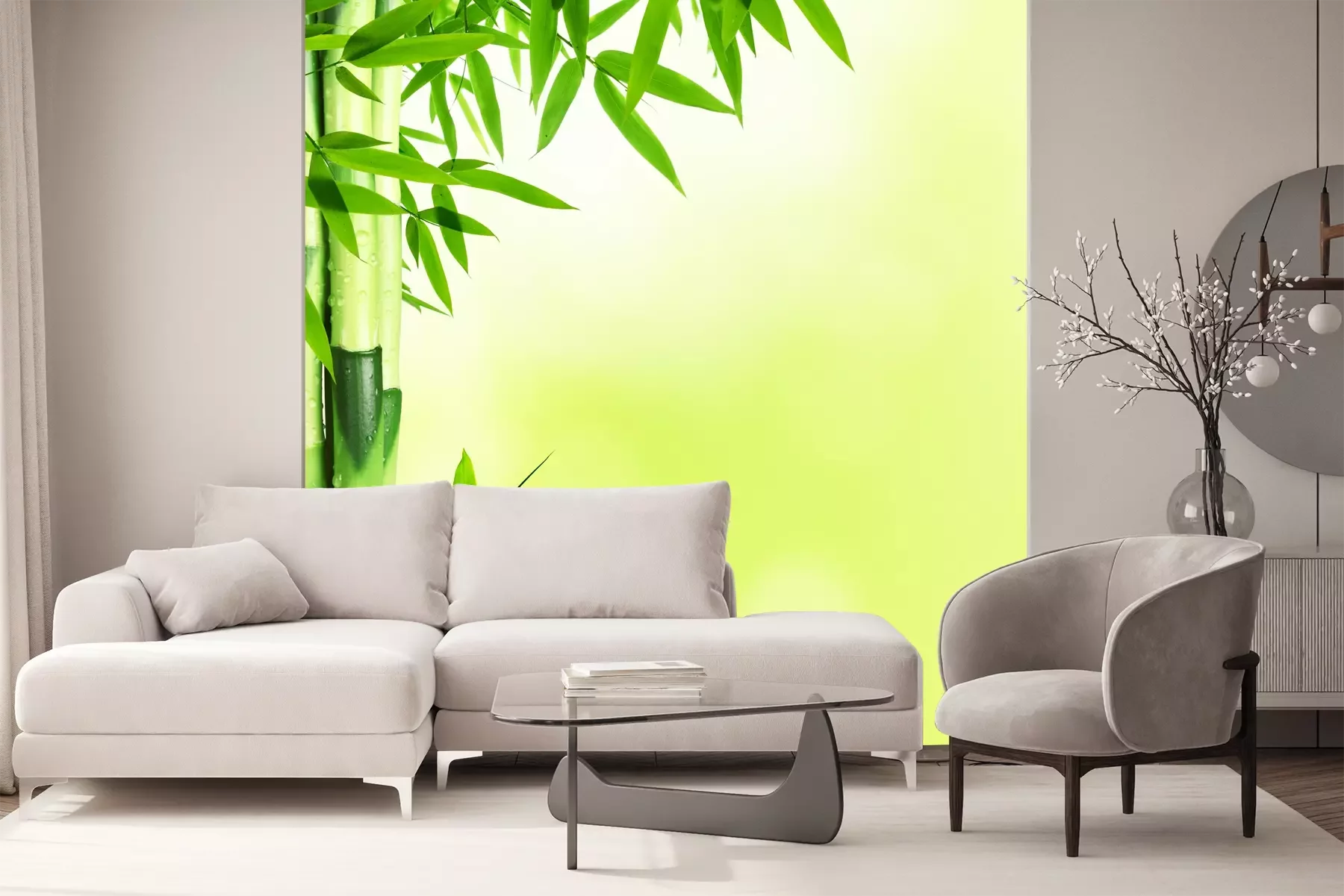 Het materiaal Premium+ is een gestructureerd vinyl op vlies met een gewicht van 255 g/m², dat kleine oneffenheden in de muur effectief camoufleert. De subtiele structuur van fijn zand geeft het oppervlak een exclusieve uitstraling, terwijl de halfmatte afwerking de diepte van de kleuren benadrukt. Het materiaal is dampdoorlatend, waardoor het ook in de keuken en badkamer kan worden gebruikt. De maximale breedte van één baan bedraagt 100 cm – bij grotere afmetingen wordt het fotobehang in meerdere gelijke banen verdeeld. De lijm wordt direct op de muur aangebracht en het behang wordt rand-aan-rand geplakt, wat zorgt voor een esthetisch resultaat zonder zichtbare naden. Het oppervlak kan gemakkelijk worden schoongemaakt door het voorzichtig af te nemen met een vochtige doek.