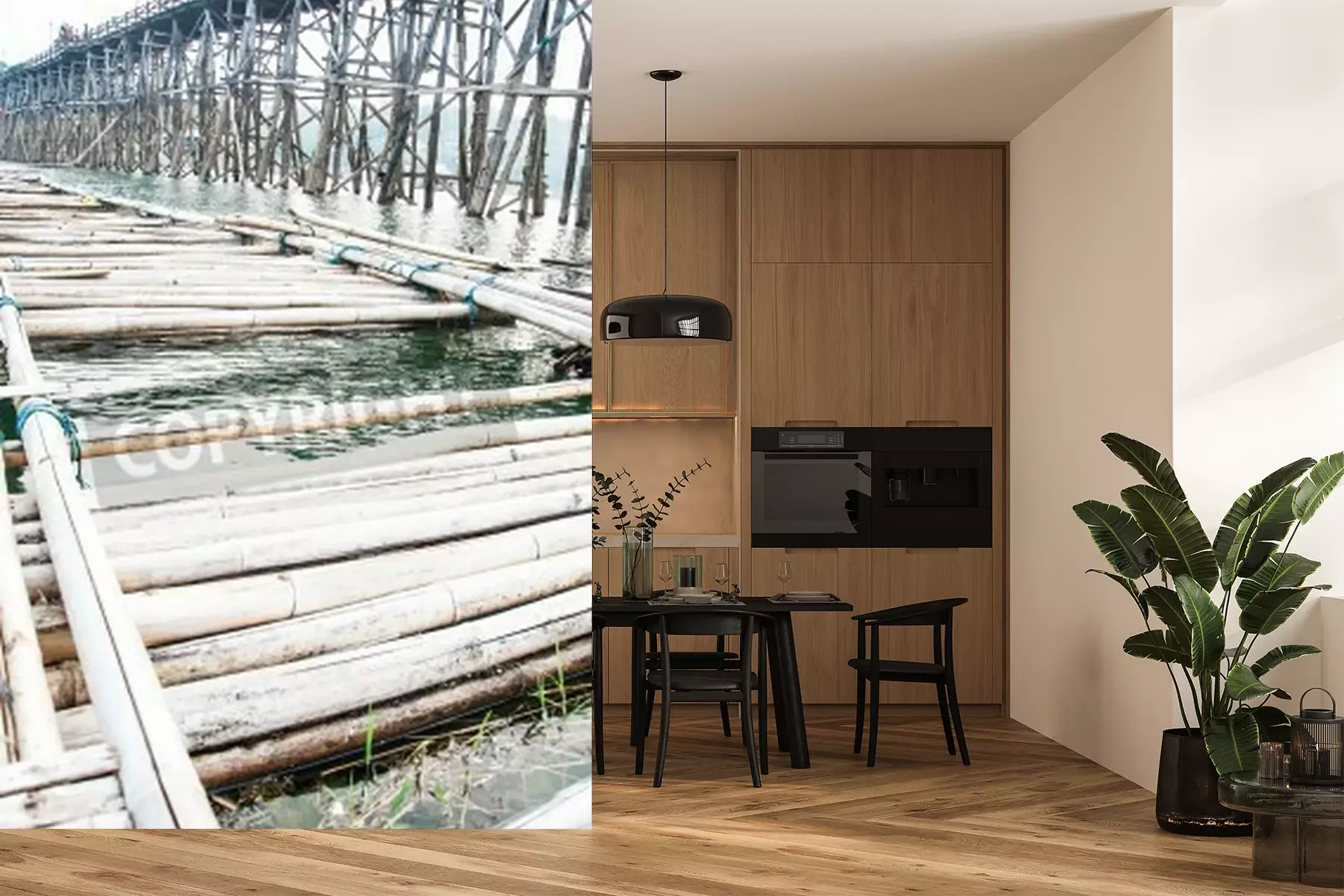 Fotobehang Bamboe voetgangersbrug in Thailand