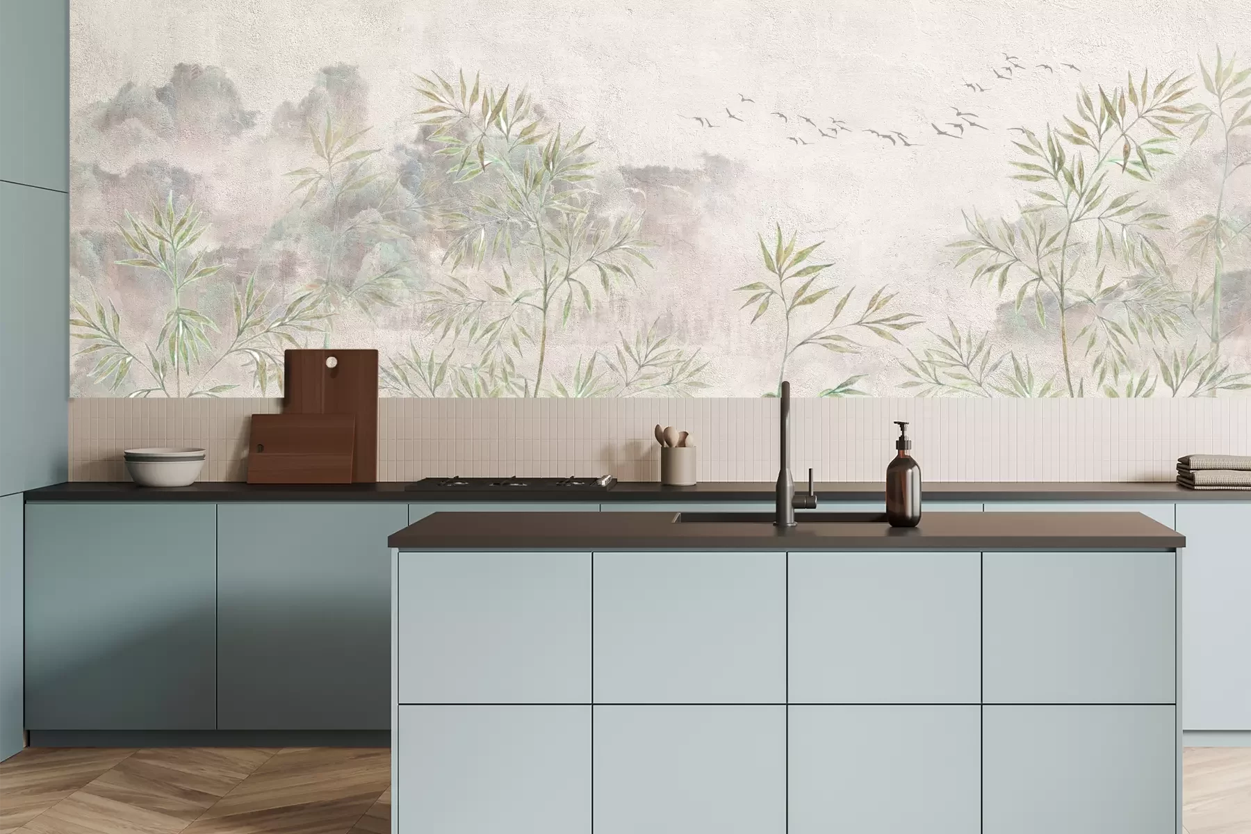 Het materiaal Premium is een glad vinyl op vlies, dat bestand is tegen uitrekken en vervorming. Het is dampdoorlatend – de muren kunnen vrij ademen – waardoor het geschikt is voor gebruik in de keuken en badkamer. Bij vervuiling kan het materiaal worden afgenomen met een vochtige doek. De maximale breedte van één baan bedraagt 95 of 105 cm, afhankelijk van de beschikbaarheid. Montage vindt plaats met de rand-aan-rand methode, wat een esthetisch resultaat zonder zichtbare naden oplevert. Omdat de lijm rechtstreeks op de muur wordt aangebracht, verloopt de installatie van het fotobehang snel en eenvoudig.