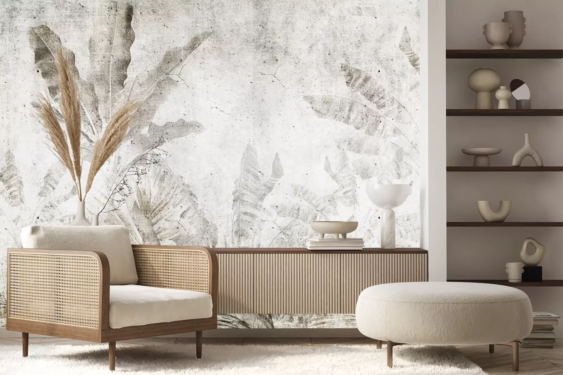 Het materiaal Premium+ is een gestructureerd vinyl op vlies met een gewicht van 255 g/m², dat kleine oneffenheden in de muur effectief camoufleert. De subtiele structuur van fijn zand geeft het oppervlak een exclusieve uitstraling, terwijl de halfmatte afwerking de diepte van de kleuren benadrukt. Het materiaal is dampdoorlatend, waardoor het ook in de keuken en badkamer kan worden gebruikt. De maximale breedte van één baan bedraagt 100 cm – bij grotere afmetingen wordt het fotobehang in meerdere gelijke banen verdeeld. De lijm wordt direct op de muur aangebracht en het behang wordt rand-aan-rand geplakt, wat zorgt voor een esthetisch resultaat zonder zichtbare naden. Het oppervlak kan gemakkelijk worden schoongemaakt door het voorzichtig af te nemen met een vochtige doek.