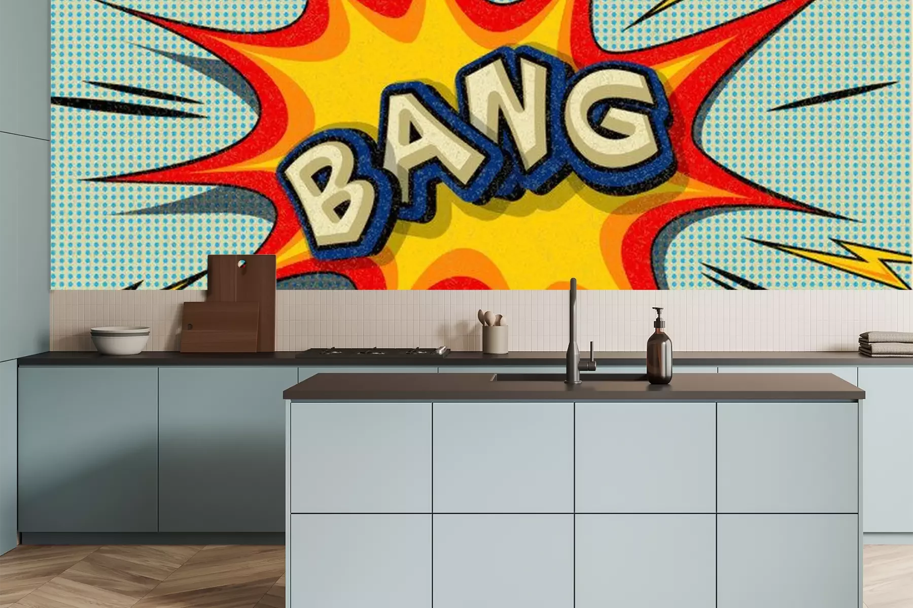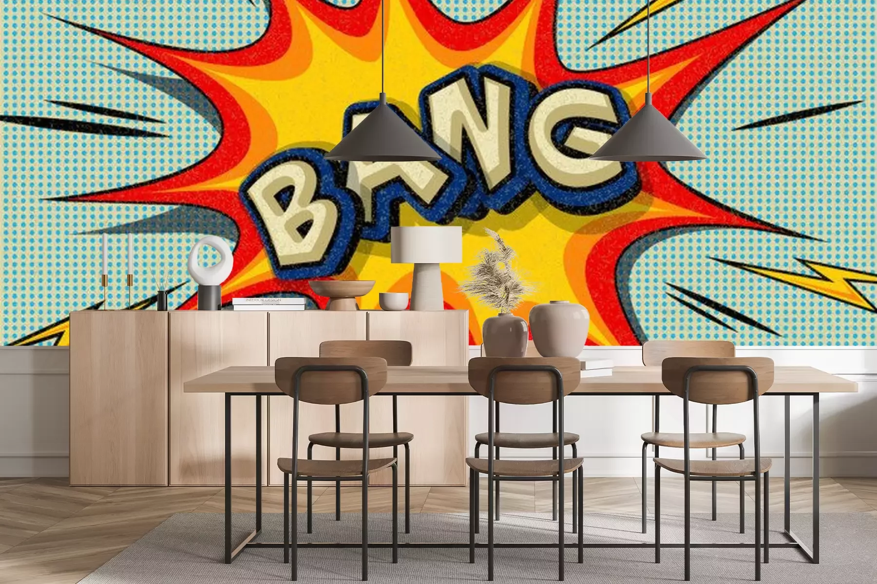 Fotobehang Bang!  Pop art cloud bubble. Wow funny speech bubble. Trendy Colorful retro vintage background in pop art retro comic style. Vector Illustration easy editable for design. Explosion comic cartoon
