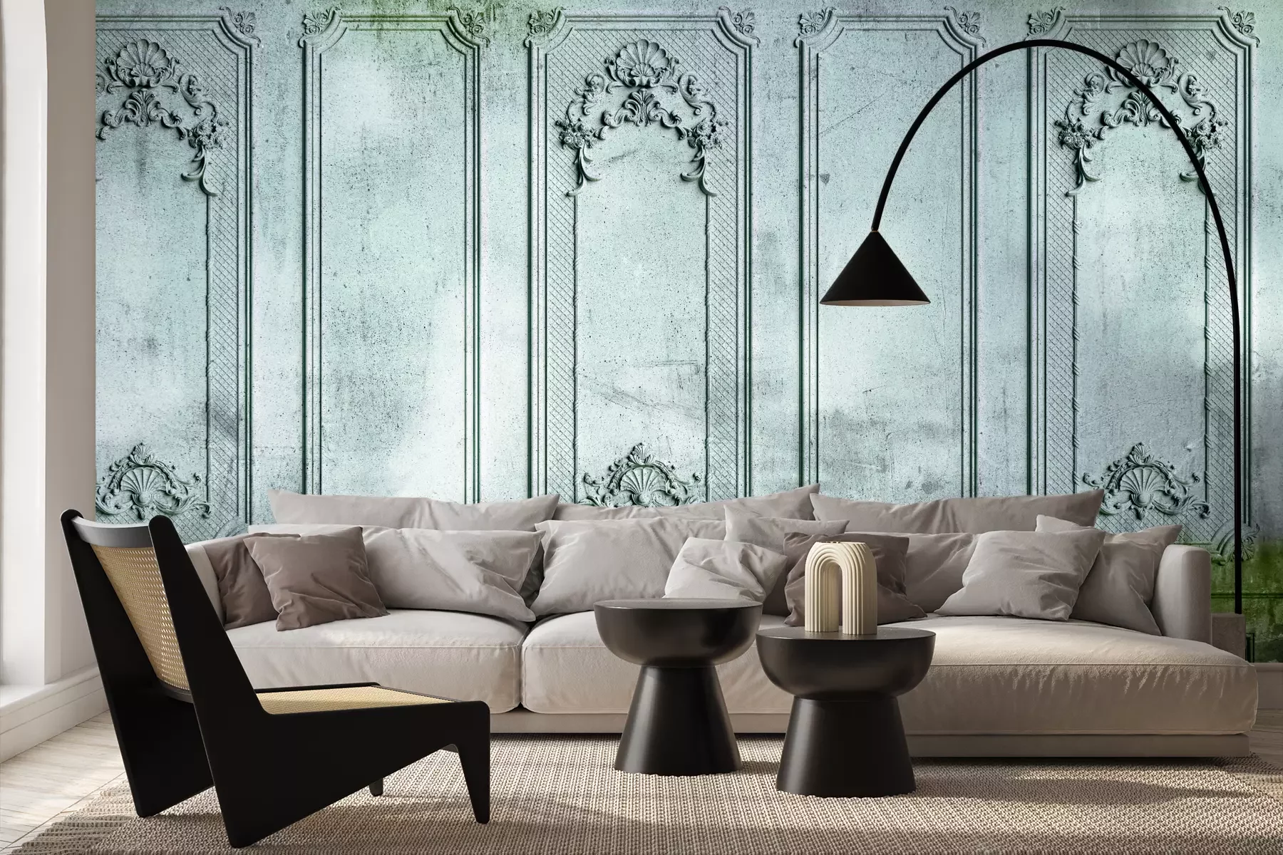Het materiaal Standard is een hoogwaardig latexmateriaal met een glad, mat oppervlak. Dankzij de HP Latex-printtechnologie zijn de kleuren intens, duurzaam en UV-bestendig, waardoor het patroon jarenlang een onberispelijke uitstraling behoudt. Vervuilde oppervlakken kunnen voorzichtig worden afgeveegd met een droge doek. De maximale breedte van één baan bedraagt 95 cm of 105 cm – afhankelijk van de bestelde fotobehangbreedte. Bij grotere afmetingen wordt het patroon verdeeld over meerdere gelijkmatige banen. Het fotobehang wordt rand-aan-randaangebracht, wat vrijwel onzichtbare naden mogelijk maakt.