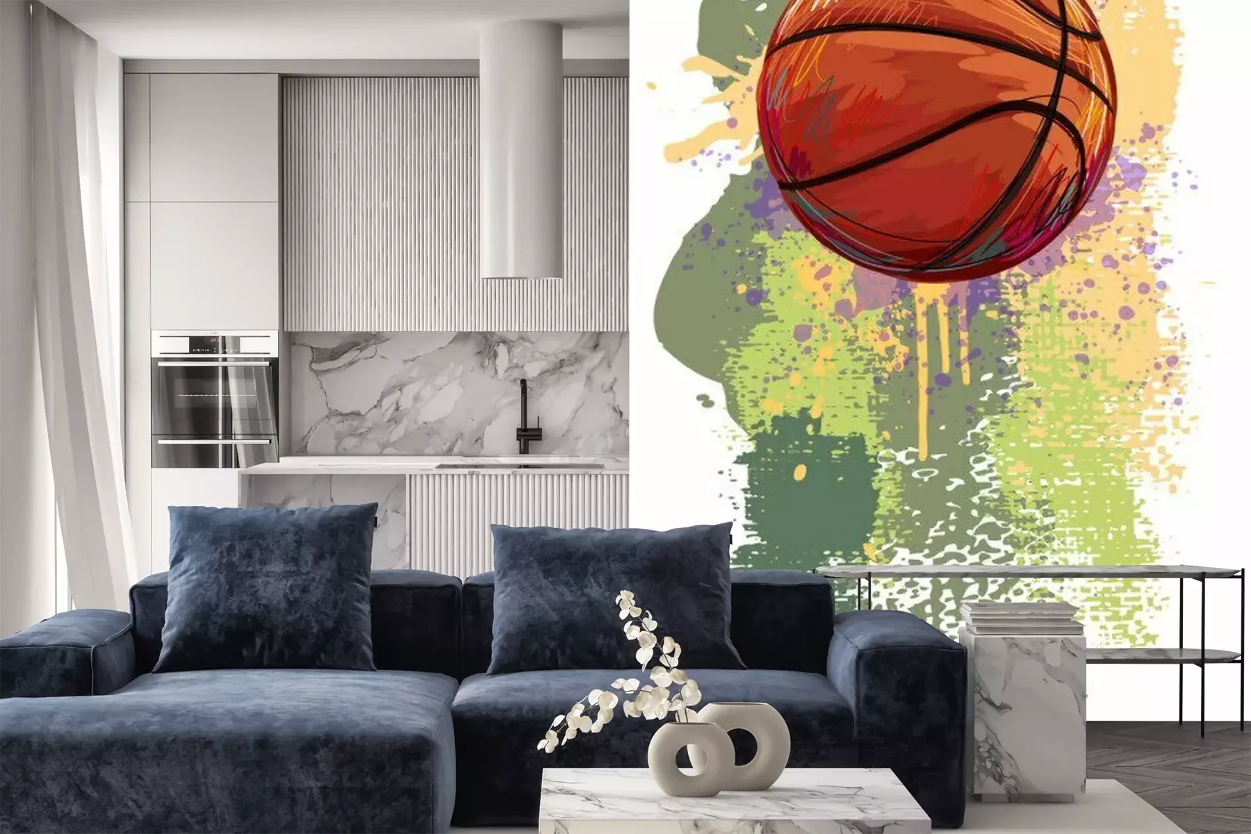 Het materiaal Premium+ is een gestructureerd vinyl op vlies met een gewicht van 255 g/m², dat kleine oneffenheden in de muur effectief camoufleert. De subtiele structuur van fijn zand geeft het oppervlak een exclusieve uitstraling, terwijl de halfmatte afwerking de diepte van de kleuren benadrukt. Het materiaal is dampdoorlatend, waardoor het ook in de keuken en badkamer kan worden gebruikt. De maximale breedte van één baan bedraagt 100 cm – bij grotere afmetingen wordt het fotobehang in meerdere gelijke banen verdeeld. De lijm wordt direct op de muur aangebracht en het behang wordt rand-aan-rand geplakt, wat zorgt voor een esthetisch resultaat zonder zichtbare naden. Het oppervlak kan gemakkelijk worden schoongemaakt door het voorzichtig af te nemen met een vochtige doek.
