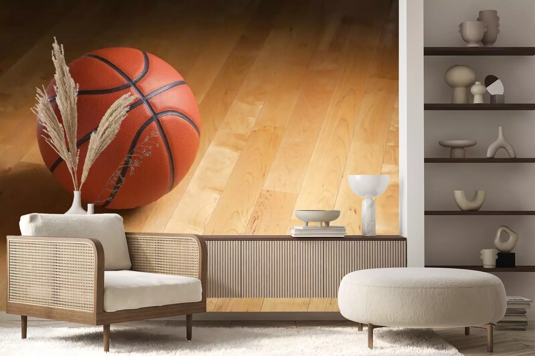 Het materiaal Premium+ is een gestructureerd vinyl op vlies met een gewicht van 255 g/m², dat kleine oneffenheden in de muur effectief camoufleert. De subtiele structuur van fijn zand geeft het oppervlak een exclusieve uitstraling, terwijl de halfmatte afwerking de diepte van de kleuren benadrukt. Het materiaal is dampdoorlatend, waardoor het ook in de keuken en badkamer kan worden gebruikt. De maximale breedte van één baan bedraagt 100 cm – bij grotere afmetingen wordt het fotobehang in meerdere gelijke banen verdeeld. De lijm wordt direct op de muur aangebracht en het behang wordt rand-aan-rand geplakt, wat zorgt voor een esthetisch resultaat zonder zichtbare naden. Het oppervlak kan gemakkelijk worden schoongemaakt door het voorzichtig af te nemen met een vochtige doek.