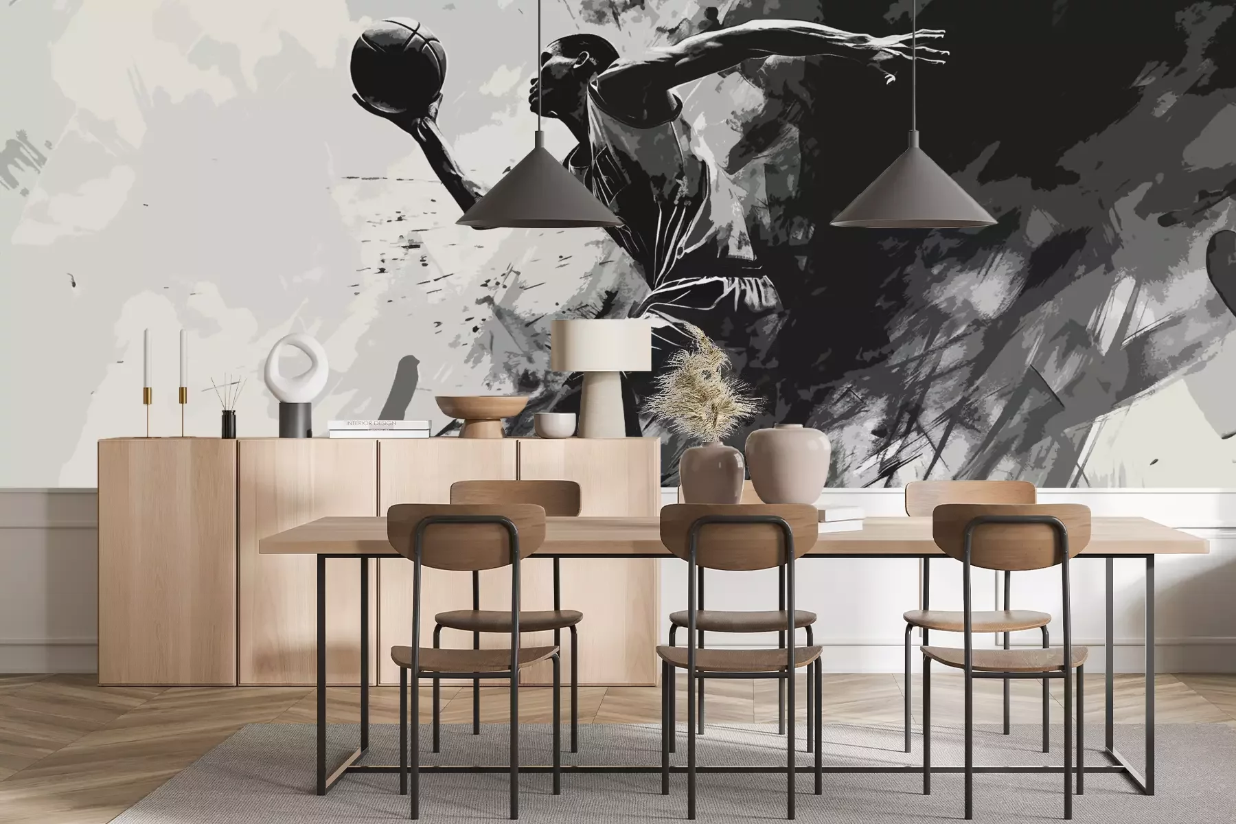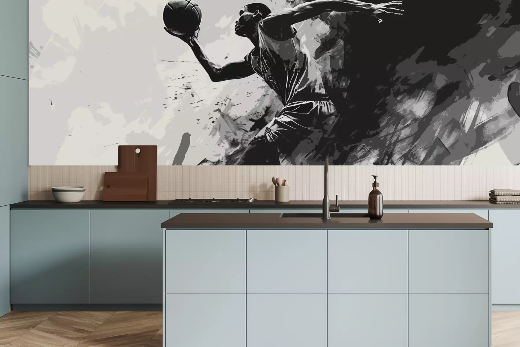 Zwarte aquarel van een basketballerProbleemloze bezorging verzorgd door vertrouwde vervoerders