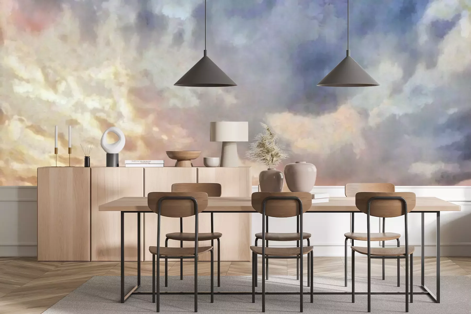 Fotobehang Beatiful Sky with Clouds Expressive Oil Painting