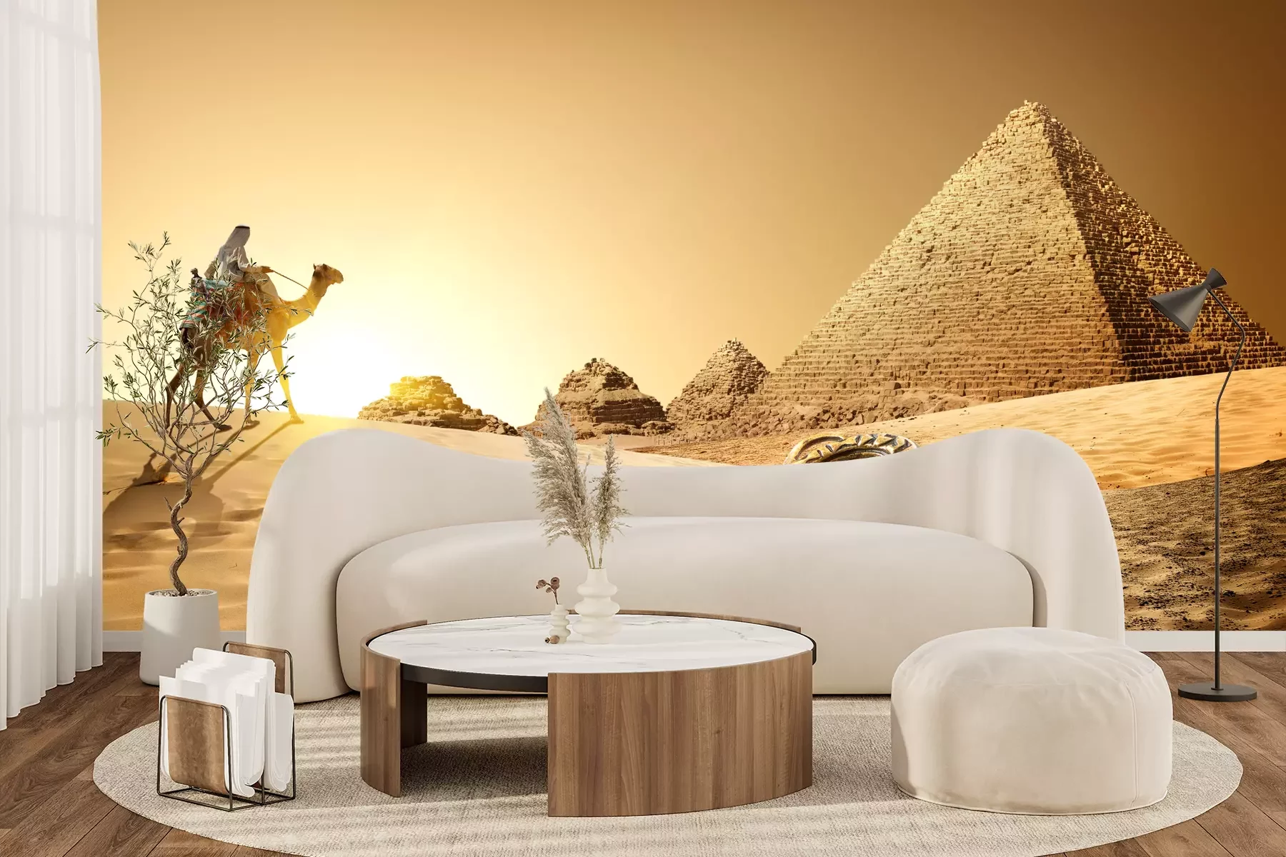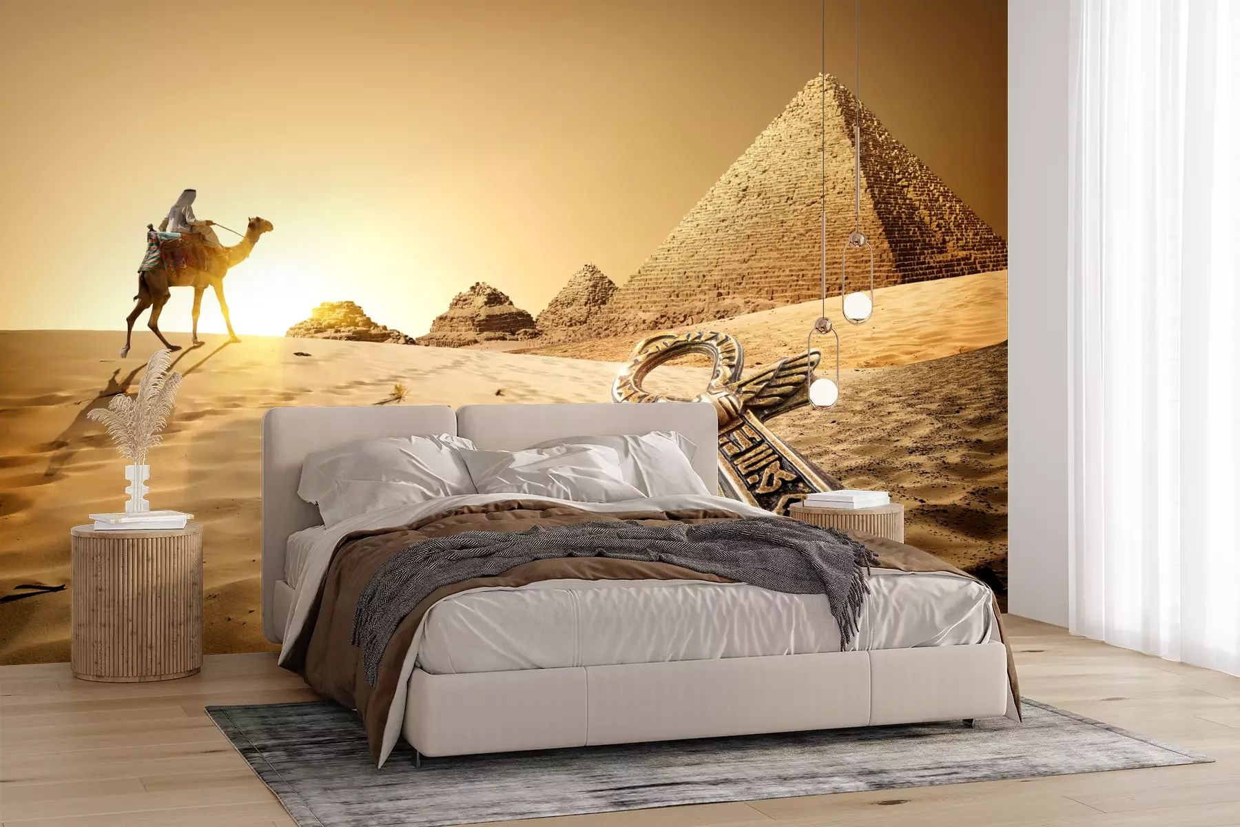 Het materiaal Premium+ is een gestructureerd vinyl op vlies met een gewicht van 255 g/m², dat kleine oneffenheden in de muur effectief camoufleert. De subtiele structuur van fijn zand geeft het oppervlak een exclusieve uitstraling, terwijl de halfmatte afwerking de diepte van de kleuren benadrukt. Het materiaal is dampdoorlatend, waardoor het ook in de keuken en badkamer kan worden gebruikt. De maximale breedte van één baan bedraagt 100 cm – bij grotere afmetingen wordt het fotobehang in meerdere gelijke banen verdeeld. De lijm wordt direct op de muur aangebracht en het behang wordt rand-aan-rand geplakt, wat zorgt voor een esthetisch resultaat zonder zichtbare naden. Het oppervlak kan gemakkelijk worden schoongemaakt door het voorzichtig af te nemen met een vochtige doek.