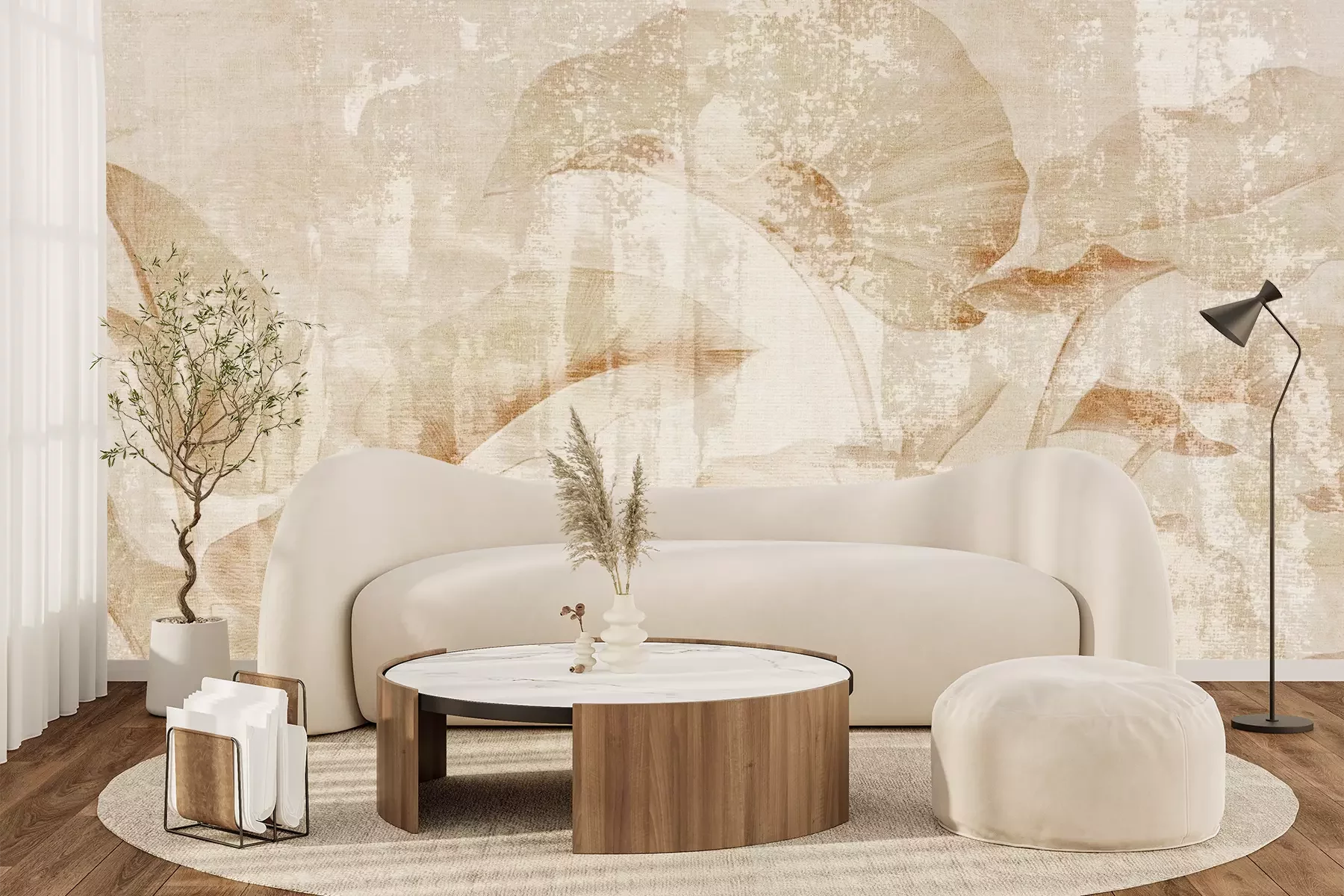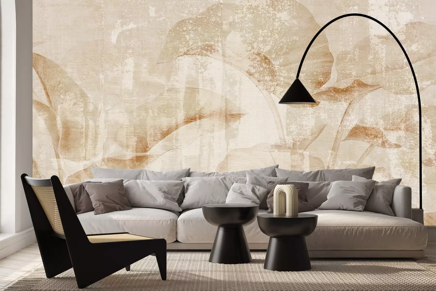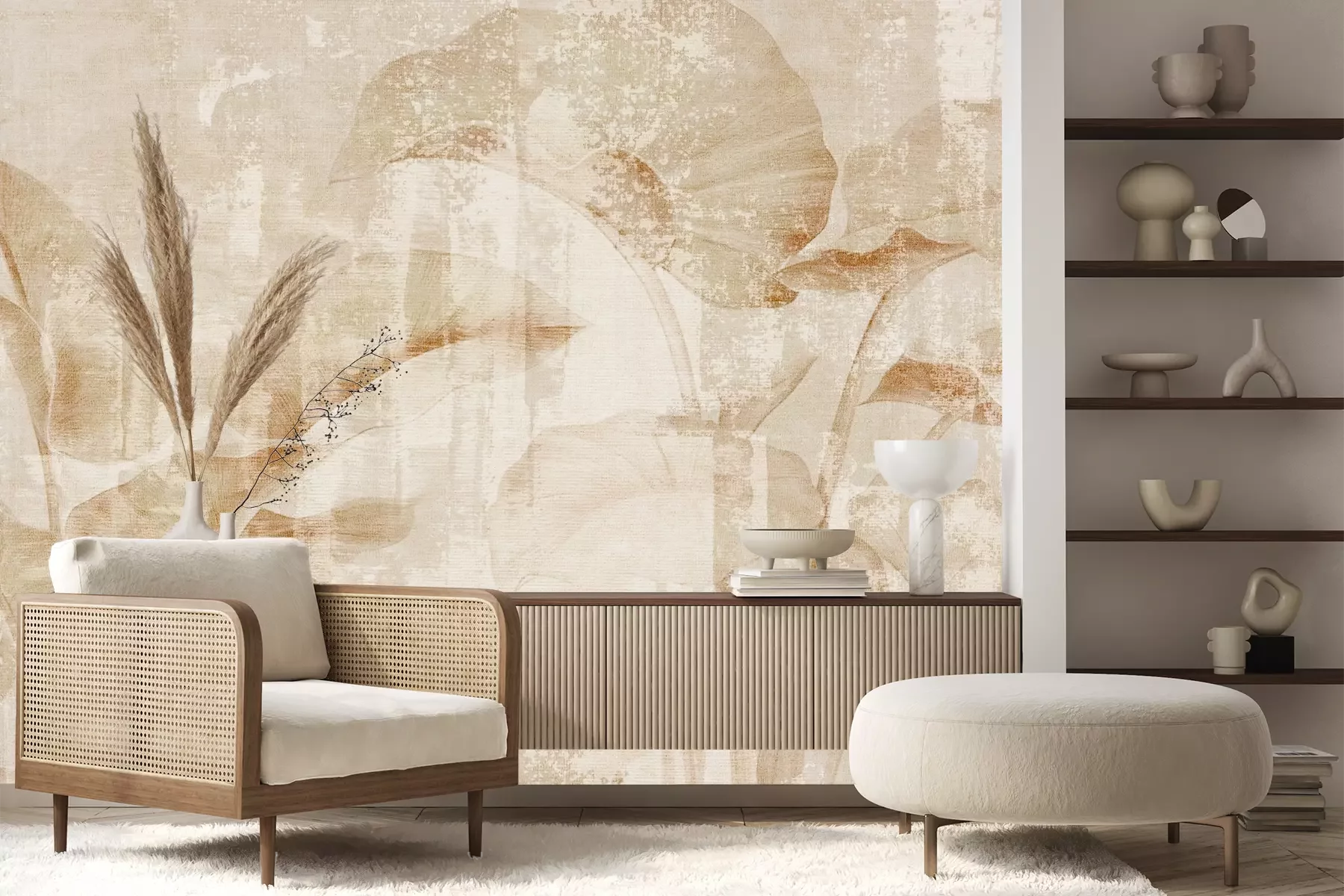 Het materiaal Premium+ is een gestructureerd vinyl op vlies met een gewicht van 255 g/m², dat kleine oneffenheden in de muur effectief camoufleert. De subtiele structuur van fijn zand geeft het oppervlak een exclusieve uitstraling, terwijl de halfmatte afwerking de diepte van de kleuren benadrukt. Het materiaal is dampdoorlatend, waardoor het ook in de keuken en badkamer kan worden gebruikt. De maximale breedte van één baan bedraagt 100 cm – bij grotere afmetingen wordt het fotobehang in meerdere gelijke banen verdeeld. De lijm wordt direct op de muur aangebracht en het behang wordt rand-aan-rand geplakt, wat zorgt voor een esthetisch resultaat zonder zichtbare naden. Het oppervlak kan gemakkelijk worden schoongemaakt door het voorzichtig af te nemen met een vochtige doek.