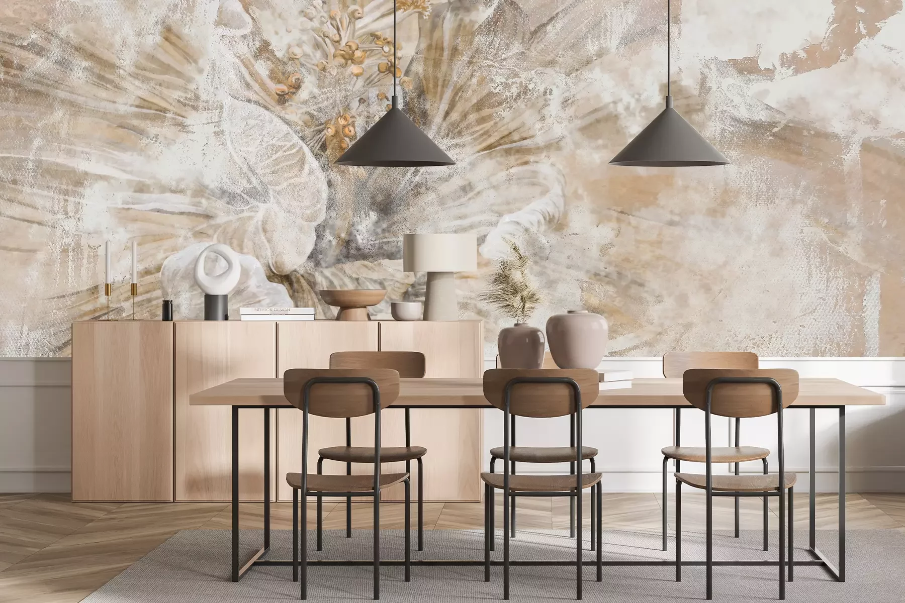Het materiaal Premium+ is een gestructureerd vinyl op vlies met een gewicht van 255 g/m², dat kleine oneffenheden in de muur effectief camoufleert. De subtiele structuur van fijn zand geeft het oppervlak een exclusieve uitstraling, terwijl de halfmatte afwerking de diepte van de kleuren benadrukt. Het materiaal is dampdoorlatend, waardoor het ook in de keuken en badkamer kan worden gebruikt. De maximale breedte van één baan bedraagt 100 cm – bij grotere afmetingen wordt het fotobehang in meerdere gelijke banen verdeeld. De lijm wordt direct op de muur aangebracht en het behang wordt rand-aan-rand geplakt, wat zorgt voor een esthetisch resultaat zonder zichtbare naden. Het oppervlak kan gemakkelijk worden schoongemaakt door het voorzichtig af te nemen met een vochtige doek.