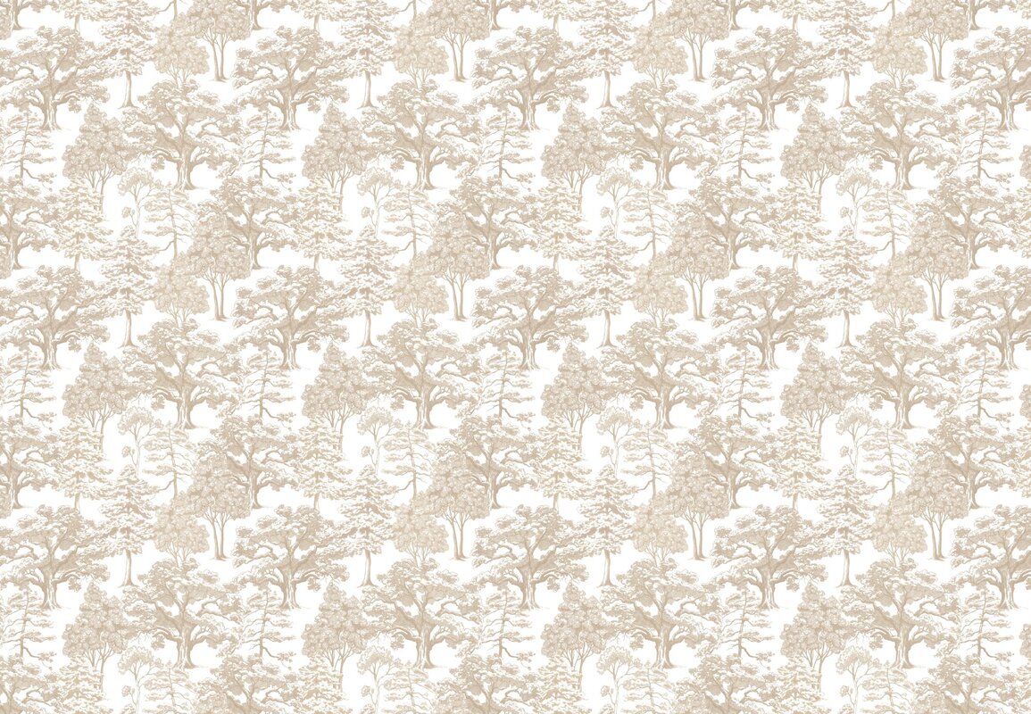 Fotobehang: Beige bomenpatroon op witte achtergrond