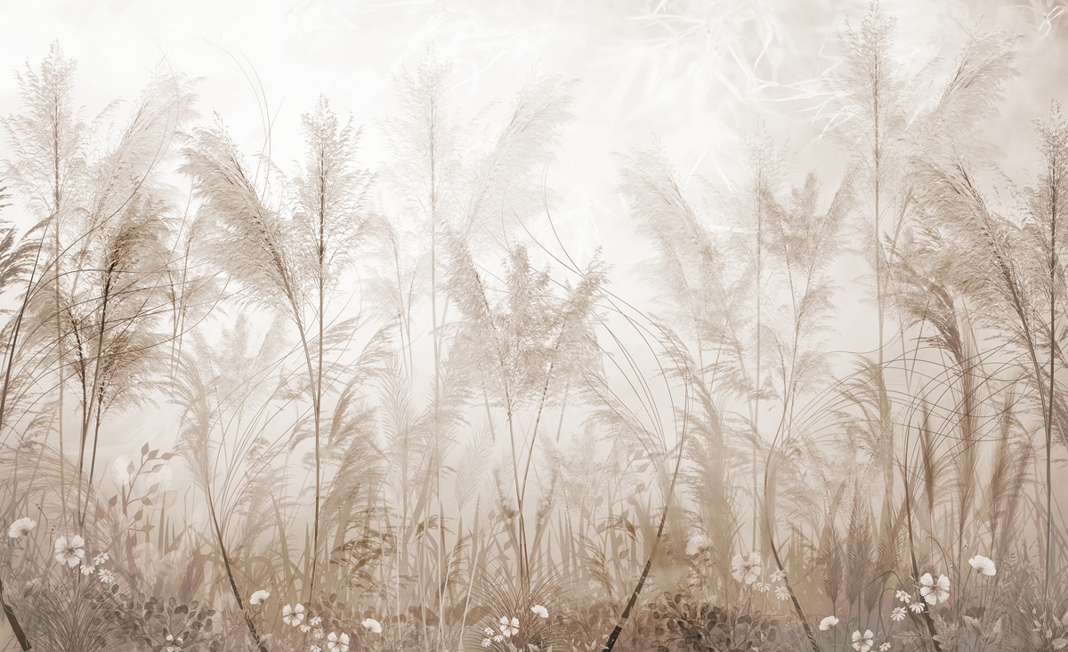 Een beige fotobehang met botanisch patroon is een voorstel dat in veel verschillende interieurs toegepast kan worden. Het is belangrijk om te benadrukken dat decoratieve motieven geïnspireerd op de natuur blijvend populair zijn. Daarom is dit een uitstekende keuze als je een inrichting wilt creëren die jarenlang meegaat. Ons geselecteerde fotobehang boho met een wilde weide, bezaaid met bloemen en pampasgras, brengt een idyllische en zorgeloze sfeer in de kamer. Het botanische patroon is uitgevoerd in subtiele beige tinten. Dit zorgt ervoor dat, hoewel de decoratie opvallend is, het gemakkelijk in de ruimte kan worden geïntegreerd als een harmonieus element van het geheel. We hebben een paar ideeën voorbereid over in welke interieurs dit fotobehang het beste tot zijn recht komt. Planten zijn een geweldig motief om een woonkamer of slaapkamer mee te decoreren. Het is de eenvoudigste manier om een gewone inrichting om te toveren in een oase van rust. In combinatie met houten en rotan meubels zal dit patroon prachtig staan. Een andere suggestie is een gezellige eetkamer, waar een floraal fotobehang perfect past. Bloemen zullen een subtiele achtergrond vormen voor familiemaaltijden en een rustige, ontspannen sfeer bevorderen. Hoewel we eerder hebben vermeld dat dit een fotobehang boho is, kan het voorgestelde patroon in veel verschillende stijlen worden gebruikt. Het wilde weidemotief is perfect als aanvulling op interieurs in retro- of eco-stijl, waar houten meubels en textiel in warme kleuren overheersen. Een heel andere optie is een modern, minimalistisch interieur in beige en crèmekleuren. Het beige fotobehang met een weide maakt het mogelijk om een monochroom interieur met een elegant karakter te creëren. Aangezien de natuur een rustgevend en ontspannend effect heeft, is dit ook een uitstekende keuze voor het decoreren van een thuiskantoor. Je zult verbaasd zijn hoeveel een botanisch fotobehang kan veranderen. Bloemen brengen een gezellige en serene sfeer in de ruimte, waardoor de tijd die je aan je bureau doorbrengt veel aangenamer wordt.