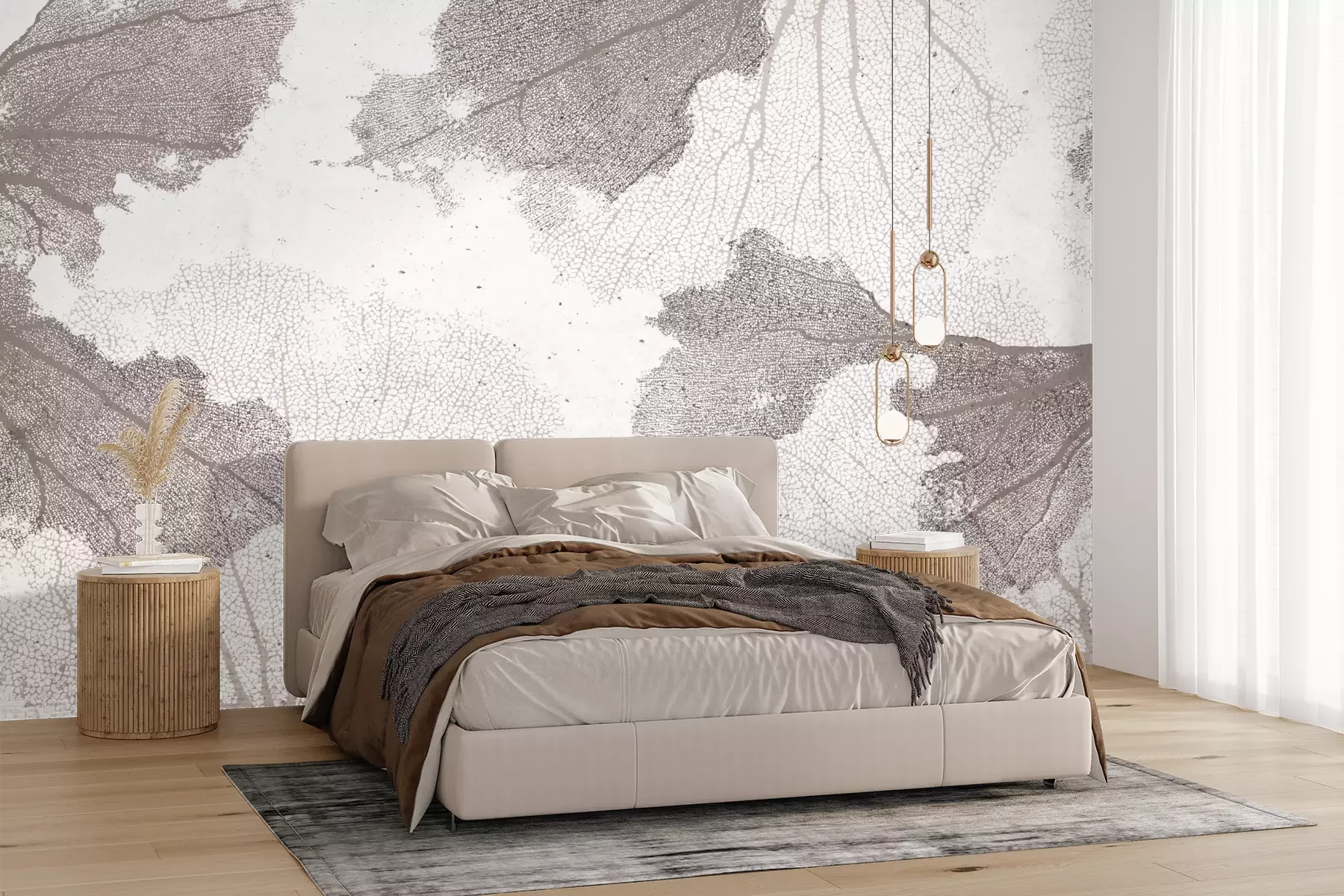 Het materiaal Premium+ is een gestructureerd vinyl op vlies met een gewicht van 255 g/m², dat kleine oneffenheden in de muur effectief camoufleert. De subtiele structuur van fijn zand geeft het oppervlak een exclusieve uitstraling, terwijl de halfmatte afwerking de diepte van de kleuren benadrukt. Het materiaal is dampdoorlatend, waardoor het ook in de keuken en badkamer kan worden gebruikt. De maximale breedte van één baan bedraagt 100 cm – bij grotere afmetingen wordt het fotobehang in meerdere gelijke banen verdeeld. De lijm wordt direct op de muur aangebracht en het behang wordt rand-aan-rand geplakt, wat zorgt voor een esthetisch resultaat zonder zichtbare naden. Het oppervlak kan gemakkelijk worden schoongemaakt door het voorzichtig af te nemen met een vochtige doek.