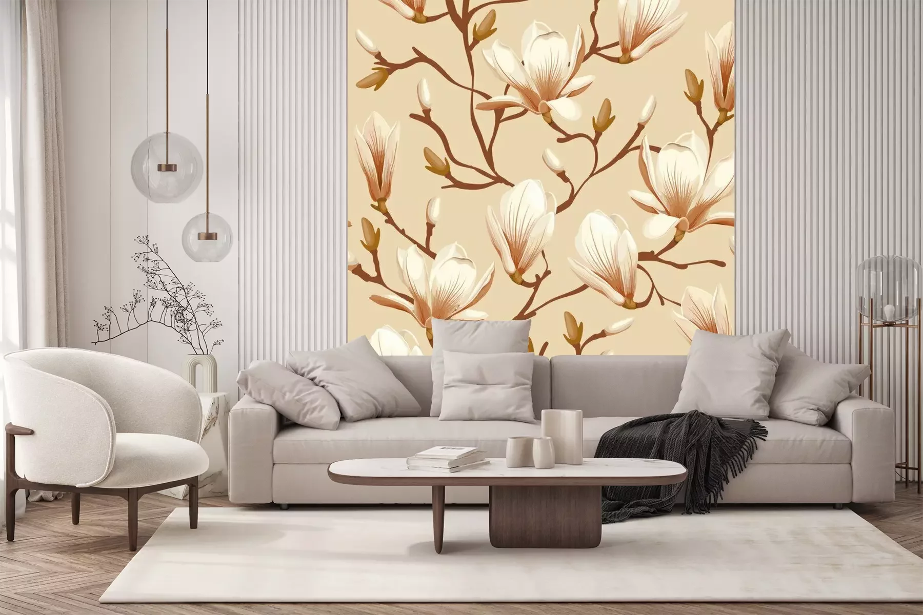 Het materiaal Standard is een hoogwaardig latexmateriaal met een glad, mat oppervlak. Dankzij de HP Latex-printtechnologie zijn de kleuren intens, duurzaam en UV-bestendig, waardoor het patroon jarenlang een onberispelijke uitstraling behoudt. Vervuilde oppervlakken kunnen voorzichtig worden afgeveegd met een droge doek. De maximale breedte van één baan bedraagt 95 cm of 105 cm – afhankelijk van de bestelde fotobehangbreedte. Bij grotere afmetingen wordt het patroon verdeeld over meerdere gelijkmatige banen. Het fotobehang wordt rand-aan-randaangebracht, wat vrijwel onzichtbare naden mogelijk maakt.