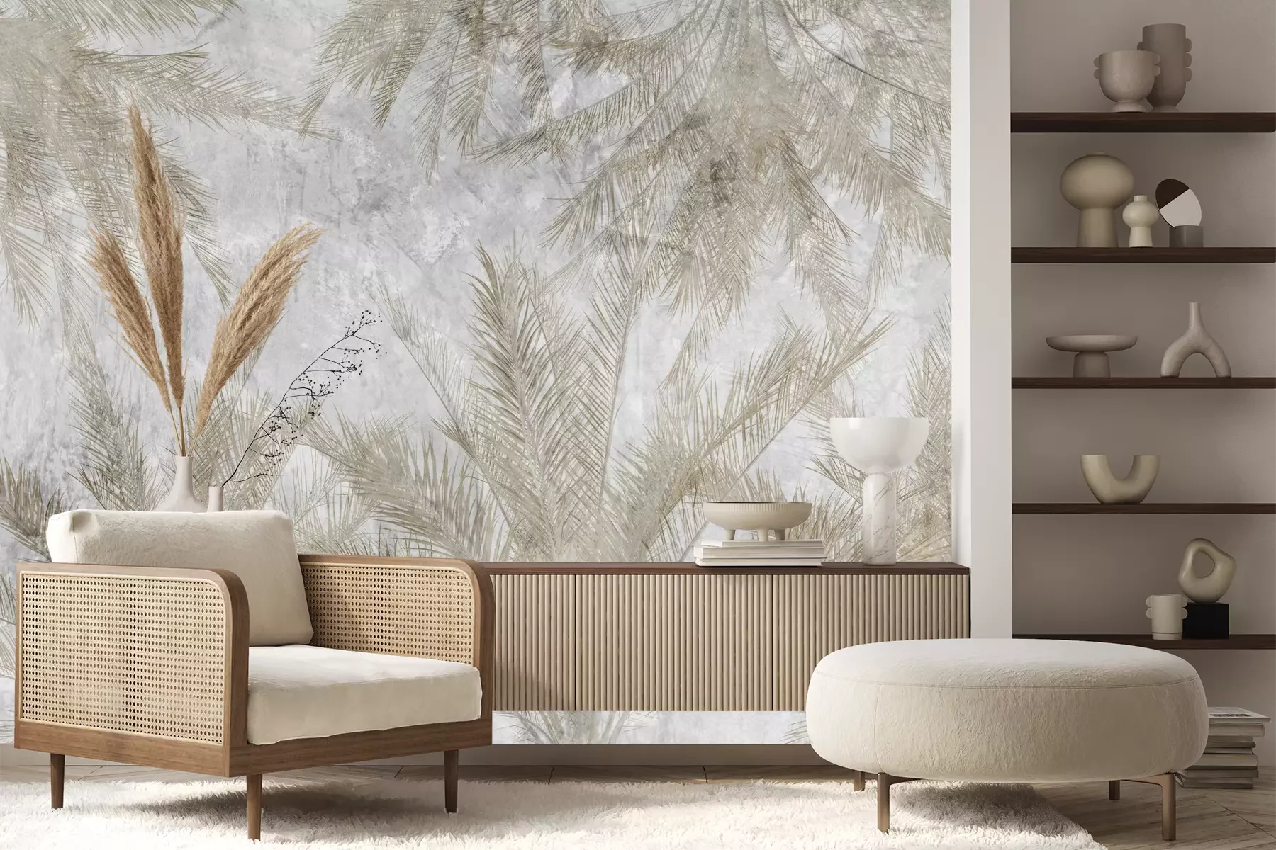Het materiaal Premium+ is een gestructureerd vinyl op vlies met een gewicht van 255 g/m², dat kleine oneffenheden in de muur effectief camoufleert. De subtiele structuur van fijn zand geeft het oppervlak een exclusieve uitstraling, terwijl de halfmatte afwerking de diepte van de kleuren benadrukt. Het materiaal is dampdoorlatend, waardoor het ook in de keuken en badkamer kan worden gebruikt. De maximale breedte van één baan bedraagt 100 cm – bij grotere afmetingen wordt het fotobehang in meerdere gelijke banen verdeeld. De lijm wordt direct op de muur aangebracht en het behang wordt rand-aan-rand geplakt, wat zorgt voor een esthetisch resultaat zonder zichtbare naden. Het oppervlak kan gemakkelijk worden schoongemaakt door het voorzichtig af te nemen met een vochtige doek.