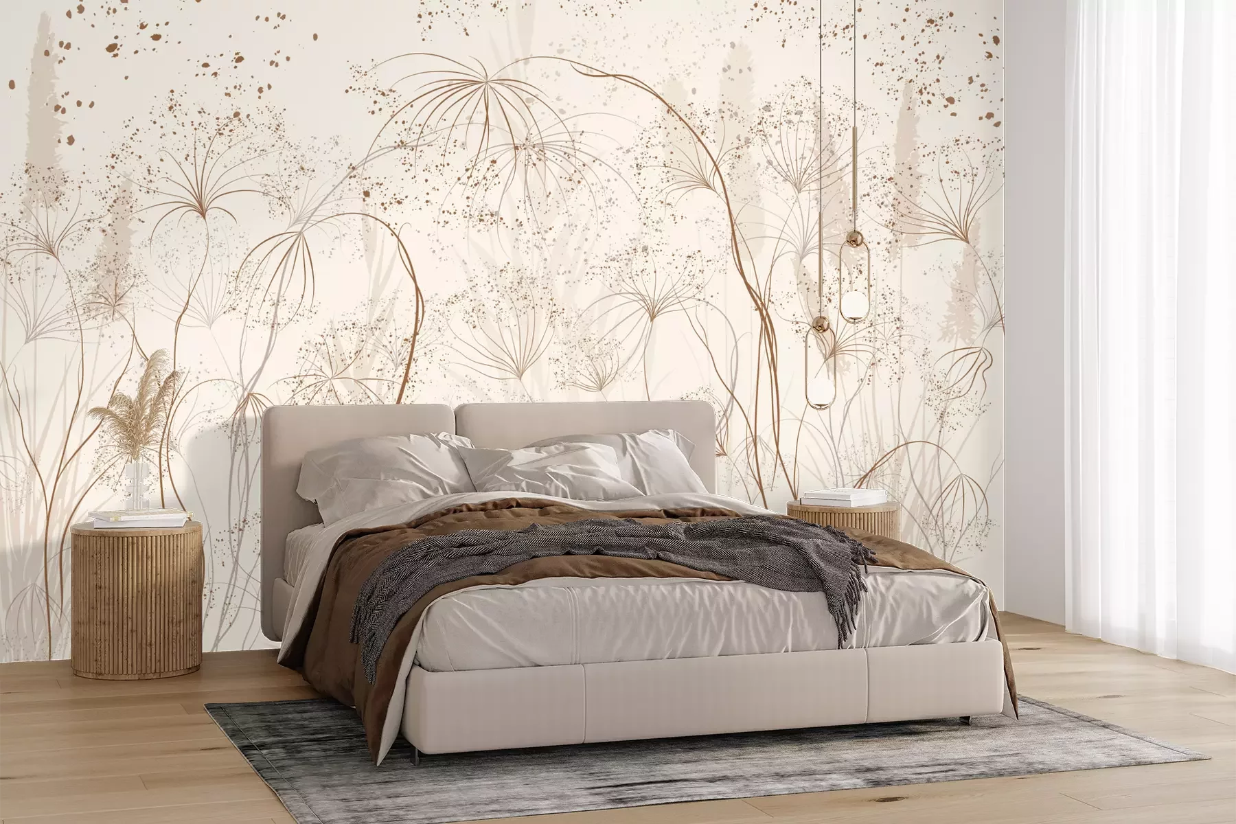Het materiaal Premium+ is een gestructureerd vinyl op vlies met een gewicht van 255 g/m², dat kleine oneffenheden in de muur effectief camoufleert. De subtiele structuur van fijn zand geeft het oppervlak een exclusieve uitstraling, terwijl de halfmatte afwerking de diepte van de kleuren benadrukt. Het materiaal is dampdoorlatend, waardoor het ook in de keuken en badkamer kan worden gebruikt. De maximale breedte van één baan bedraagt 100 cm – bij grotere afmetingen wordt het fotobehang in meerdere gelijke banen verdeeld. De lijm wordt direct op de muur aangebracht en het behang wordt rand-aan-rand geplakt, wat zorgt voor een esthetisch resultaat zonder zichtbare naden. Het oppervlak kan gemakkelijk worden schoongemaakt door het voorzichtig af te nemen met een vochtige doek.