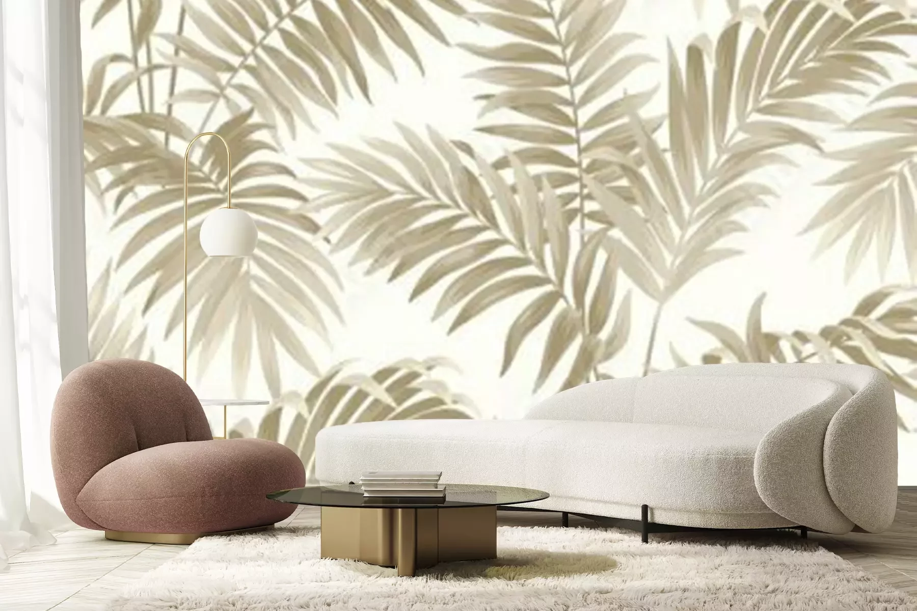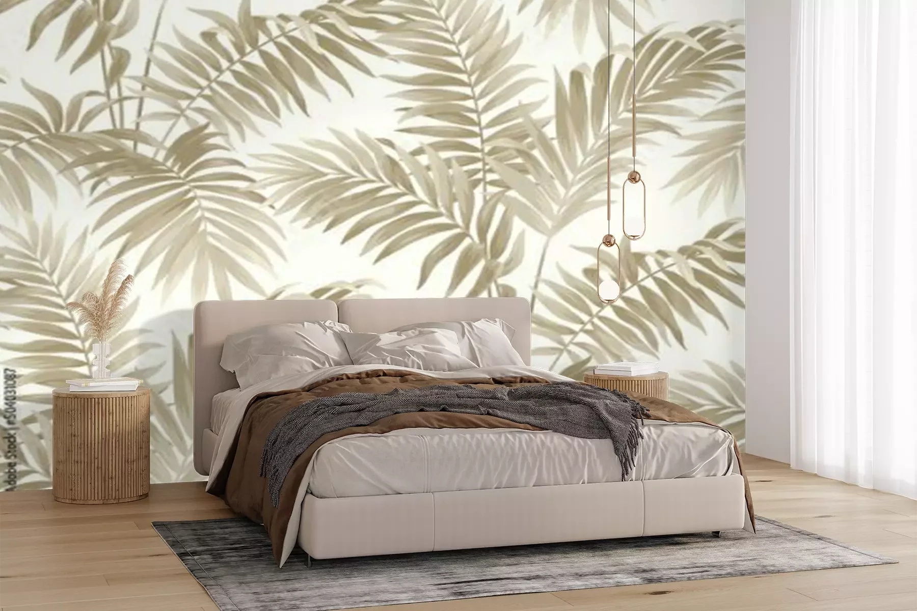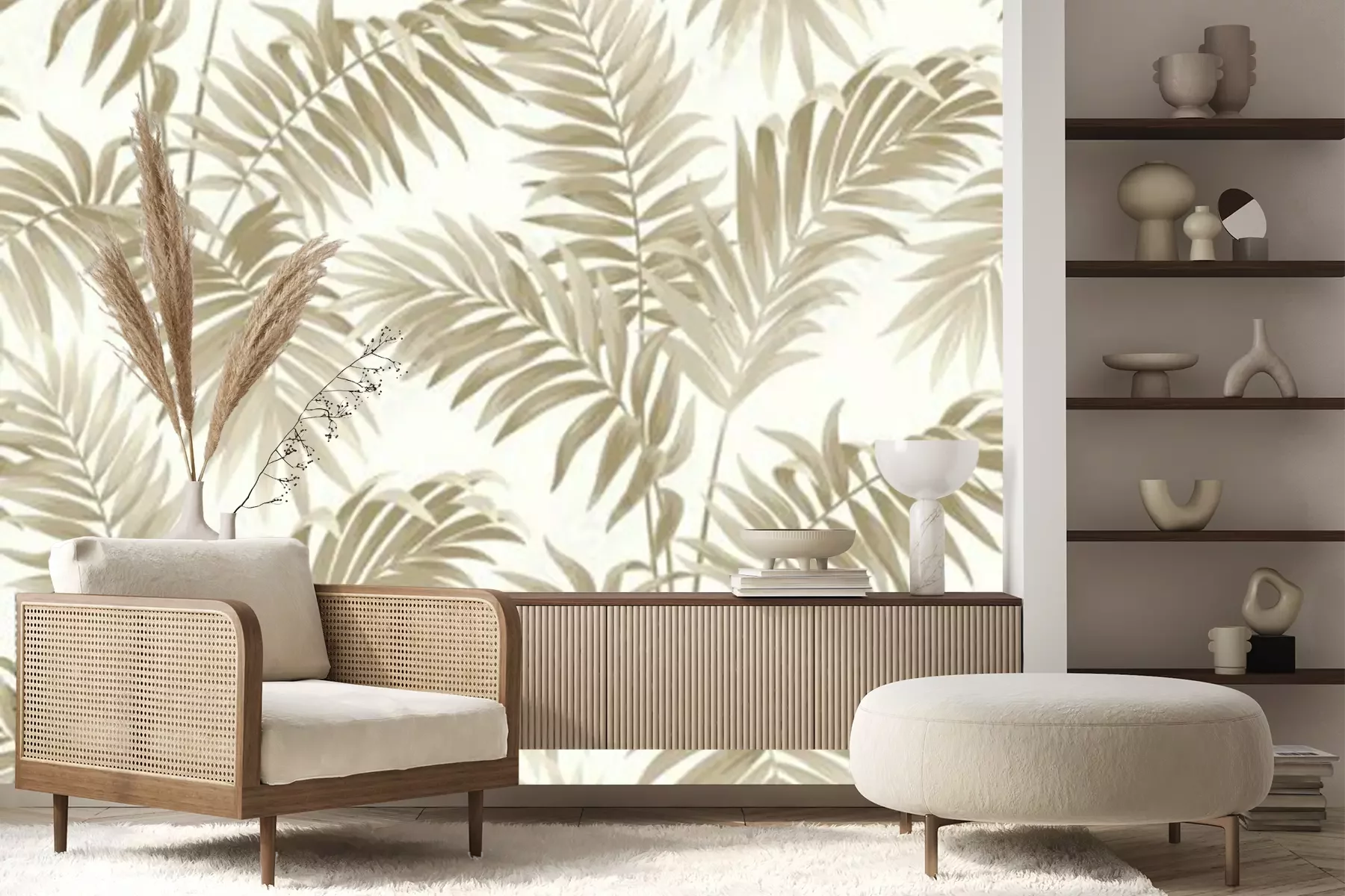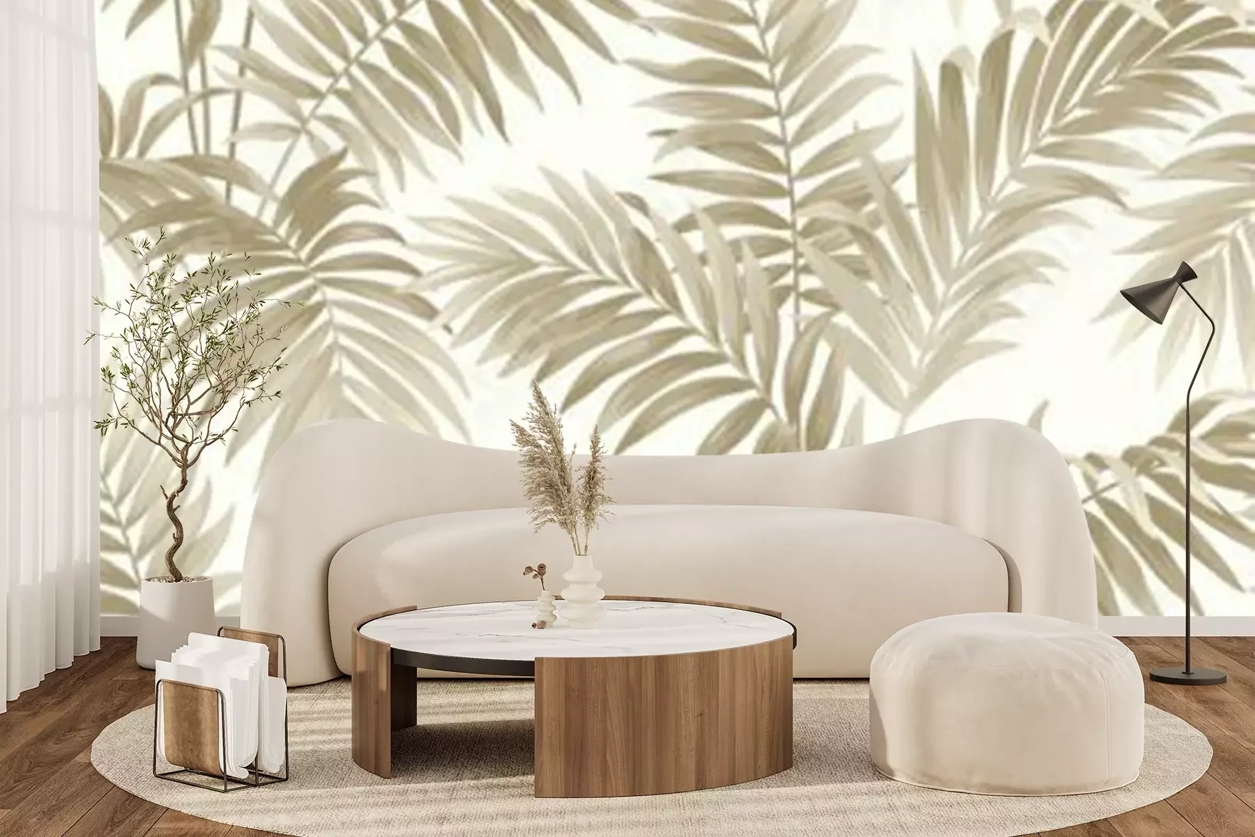 Fotobehang Beige struikgewas vol bladeren