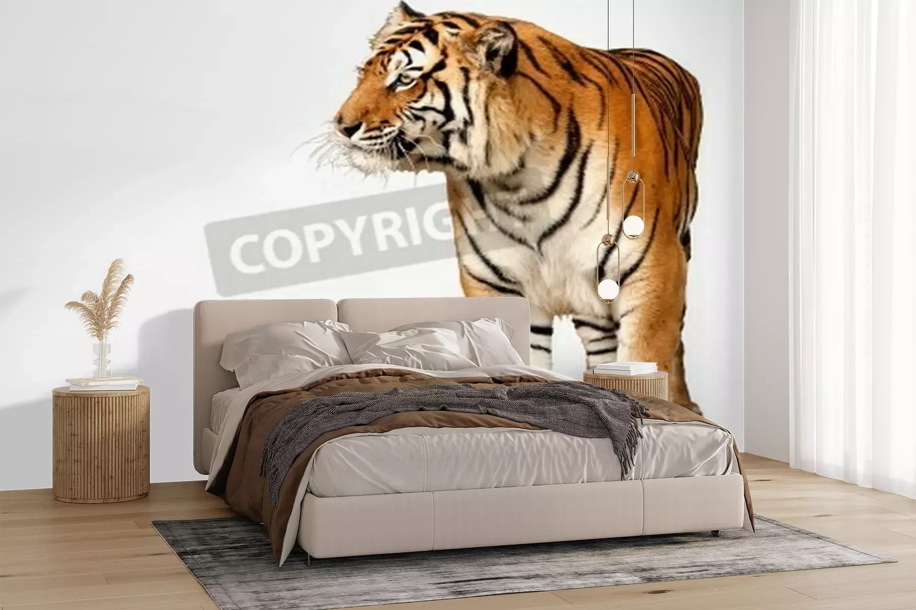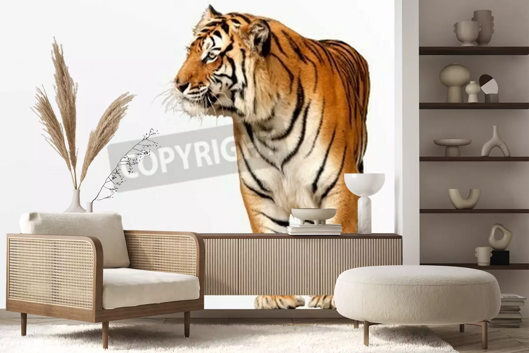 Fotobehang Bengaalse tijger op witte achtergrond