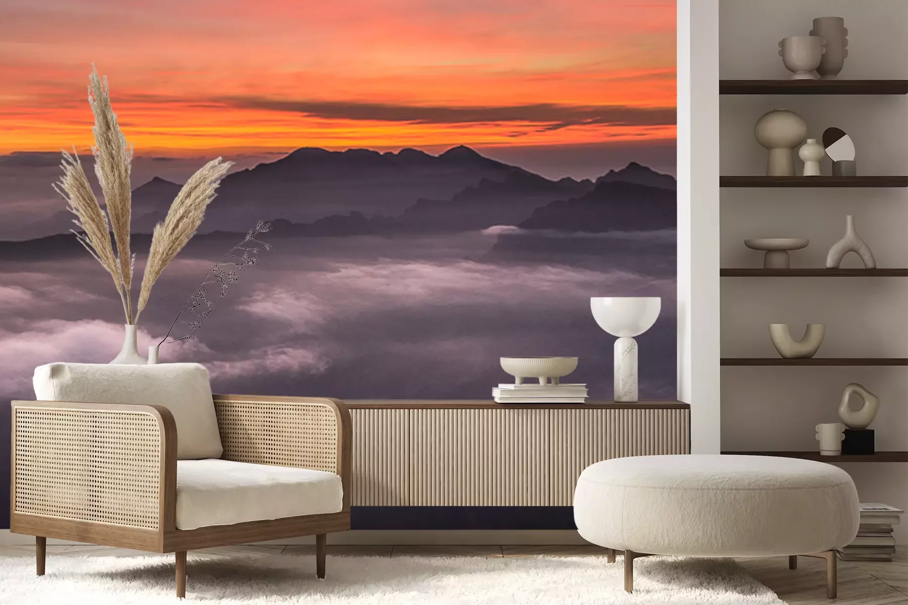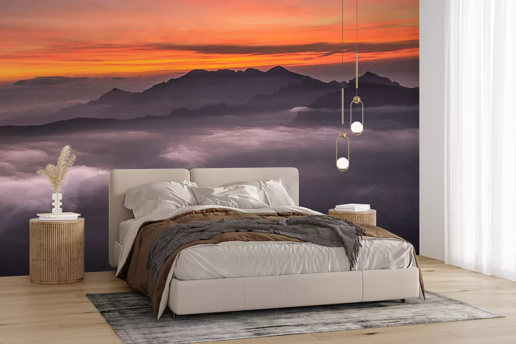 Het materiaal Premium+ is een gestructureerd vinyl op vlies met een gewicht van 255 g/m², dat kleine oneffenheden in de muur effectief camoufleert. De subtiele structuur van fijn zand geeft het oppervlak een exclusieve uitstraling, terwijl de halfmatte afwerking de diepte van de kleuren benadrukt. Het materiaal is dampdoorlatend, waardoor het ook in de keuken en badkamer kan worden gebruikt. De maximale breedte van één baan bedraagt 100 cm – bij grotere afmetingen wordt het fotobehang in meerdere gelijke banen verdeeld. De lijm wordt direct op de muur aangebracht en het behang wordt rand-aan-rand geplakt, wat zorgt voor een esthetisch resultaat zonder zichtbare naden. Het oppervlak kan gemakkelijk worden schoongemaakt door het voorzichtig af te nemen met een vochtige doek.