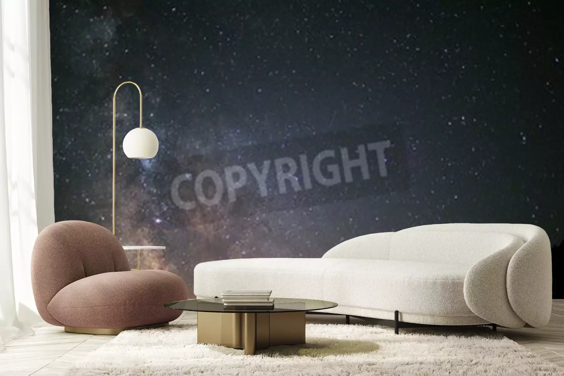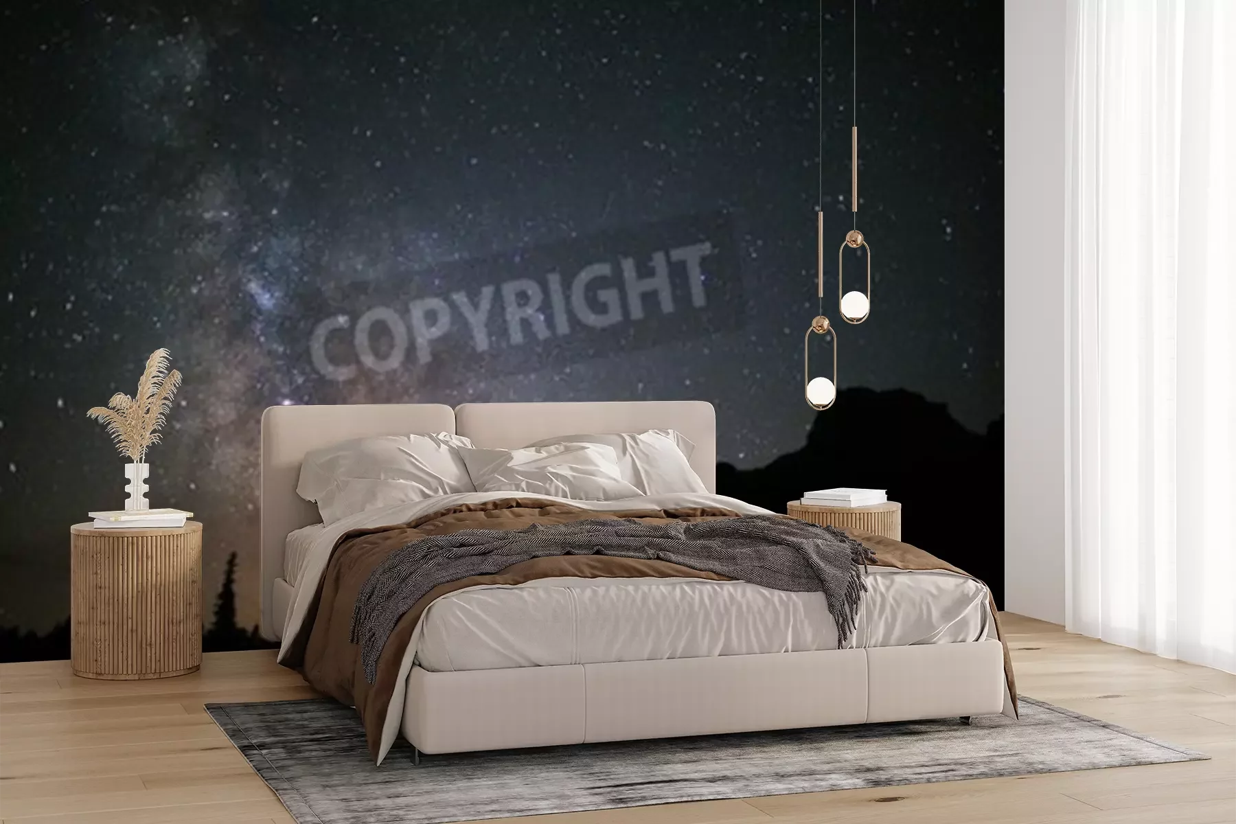 Fotobehang Bergen en bossen onder een sterrenhemel