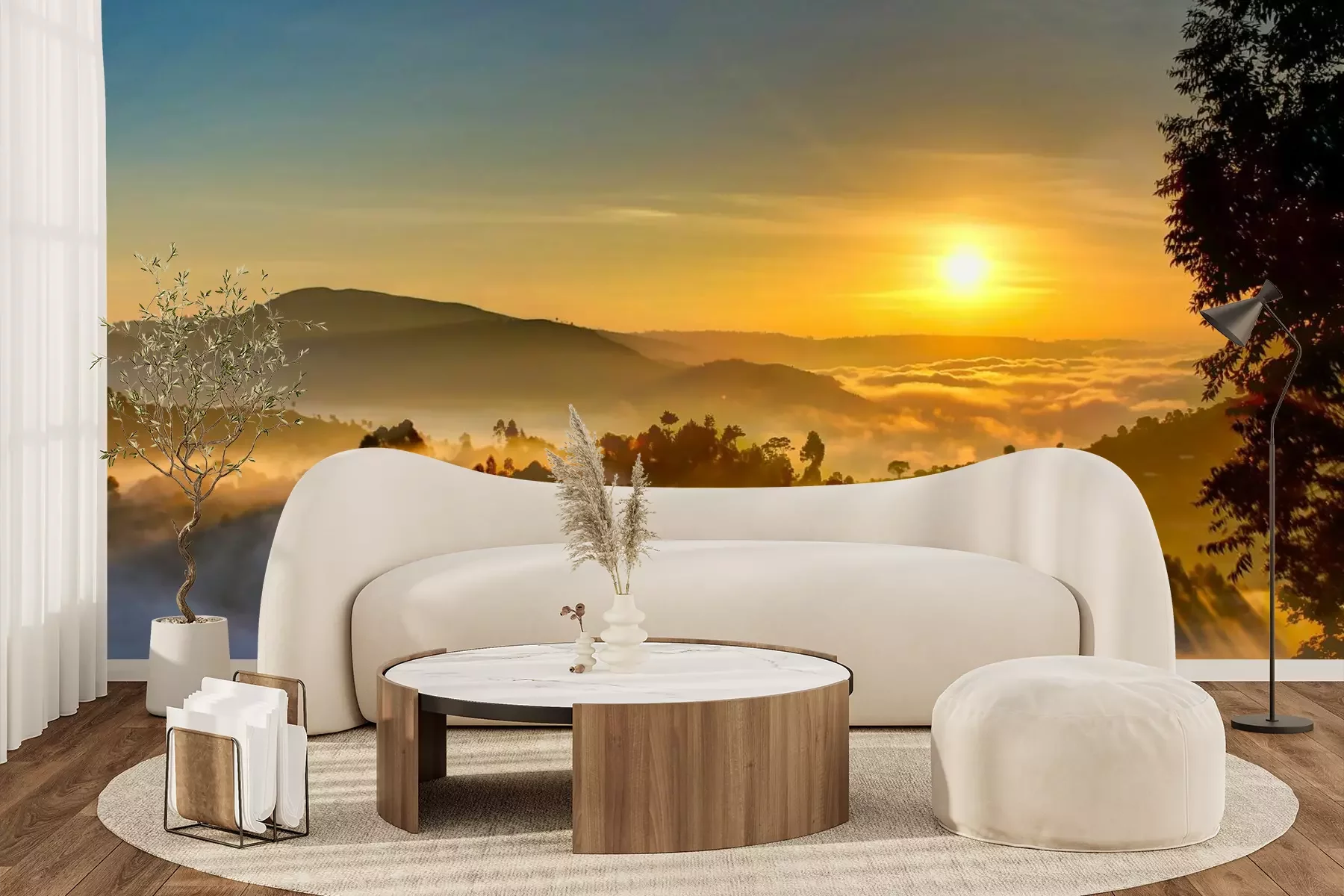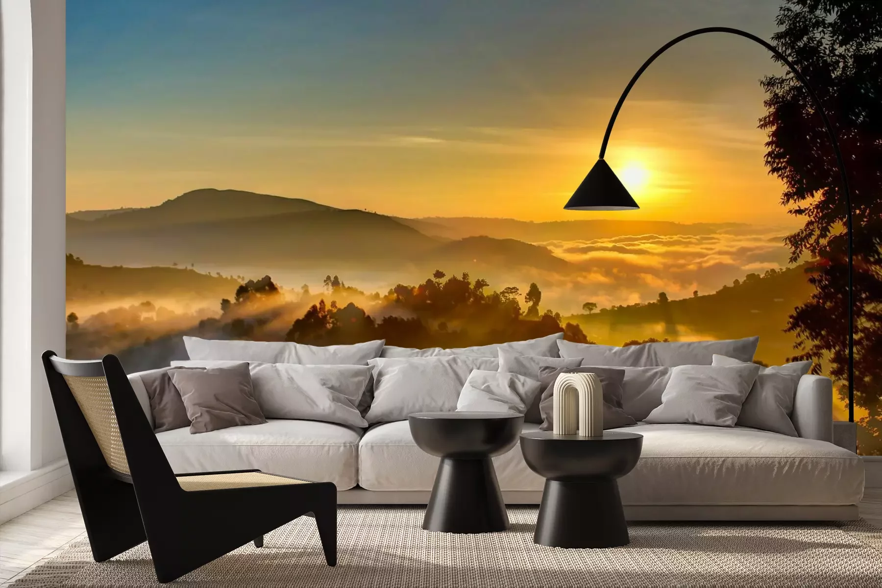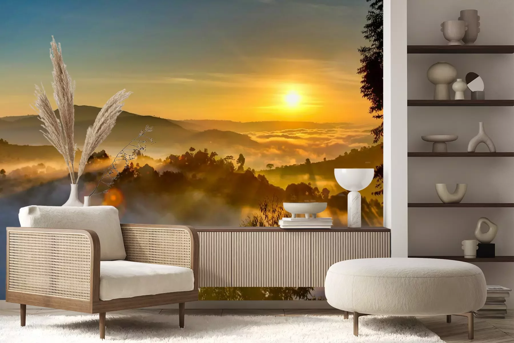 Het materiaal Premium+ is een gestructureerd vinyl op vlies met een gewicht van 255 g/m², dat kleine oneffenheden in de muur effectief camoufleert. De subtiele structuur van fijn zand geeft het oppervlak een exclusieve uitstraling, terwijl de halfmatte afwerking de diepte van de kleuren benadrukt. Het materiaal is dampdoorlatend, waardoor het ook in de keuken en badkamer kan worden gebruikt. De maximale breedte van één baan bedraagt 100 cm – bij grotere afmetingen wordt het fotobehang in meerdere gelijke banen verdeeld. De lijm wordt direct op de muur aangebracht en het behang wordt rand-aan-rand geplakt, wat zorgt voor een esthetisch resultaat zonder zichtbare naden. Het oppervlak kan gemakkelijk worden schoongemaakt door het voorzichtig af te nemen met een vochtige doek.