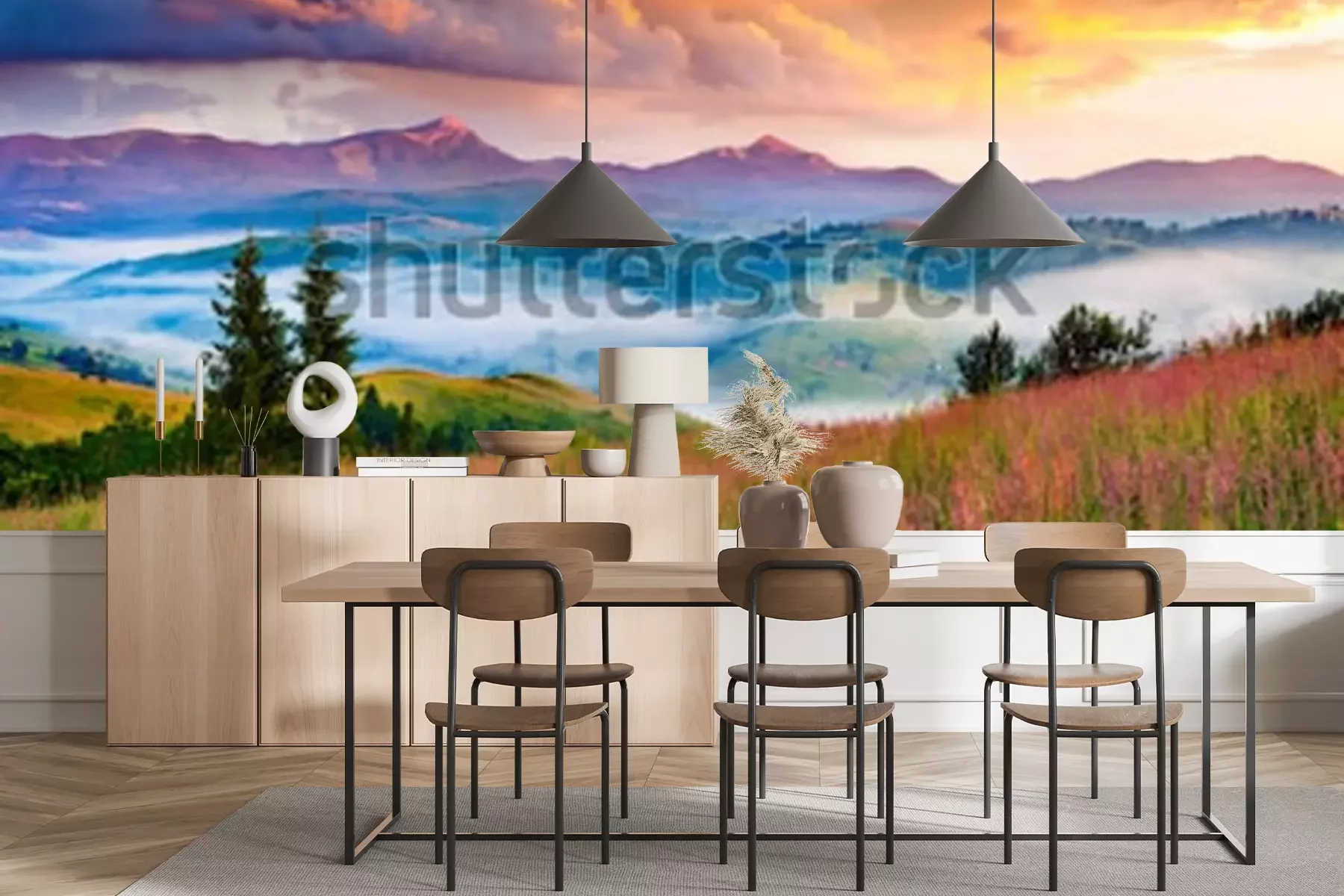Fotobehang Bergen in nevel en landschap